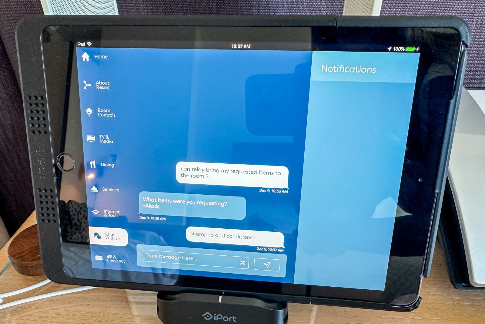 What makes Aventura's rooms stand out from other Universal Orlando hotels, though, are the tech-friendly room controls. Each room is outfitted with a Bluetooth speaker and an iPad that allows you to control the television, temperature, lighting and more. You can use the tablet to stream your Netflix account to the TV, to order room service and to request toiletries. If you request toiletries, you can chat with a team member via the tablet and request that Relay the Robot bring your items to your room.