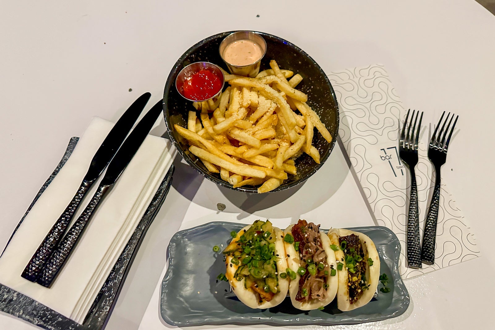 Bar 17 Bistro is one of my favorite late-night spots at Universal, and it is located right here at Aventura Hotel. This rooftop lounge is open daily until midnight, with food service until 10:30 p.m. During my visit, I tried the Bao sampler, which comes with three bao buns of your choosing for $18. I've had every variety at this point and love them all, especially the jackfruit and crispy pork belly. I had the Parmesan fries ($8) on the side, which I was less impressed by. The fries and the dipping sauces were good, but nothing helped the Parmesan adhere to the fries, so most of it was just piled up at the bottom of the bowl. Bar 17 Bistro also has a robust beer, wine and cocktail menu.