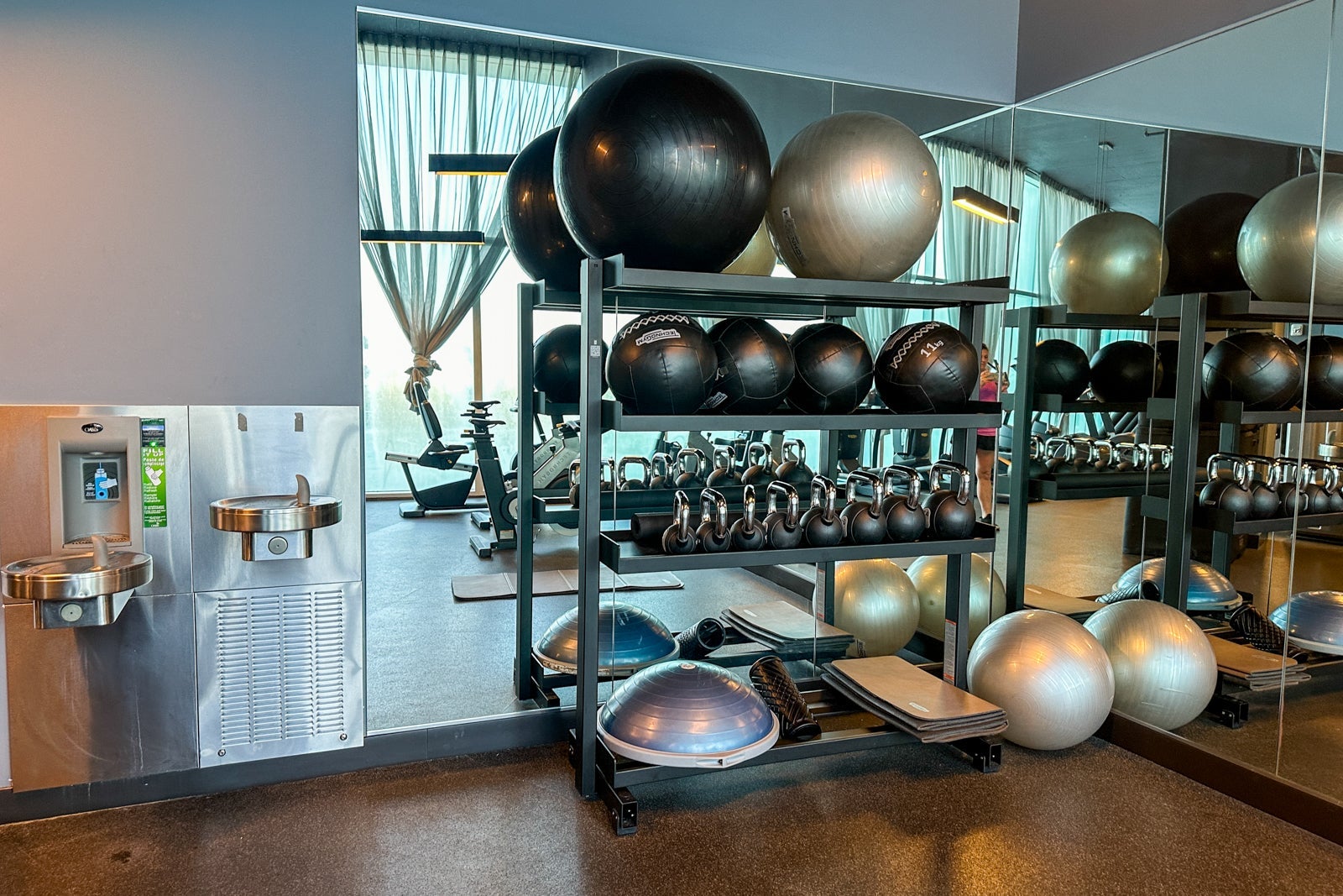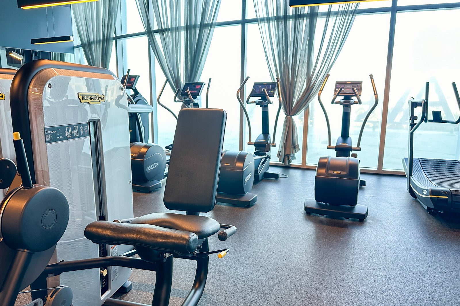 Aventura Hotel's fitness center is on the second floor and is open 24 hours a day. Like most hotel gyms, this one is not what I would consider spacious, but there is a decent variety of equipment. There was a good selection of free weights, weight-training machines and cardio equipment. I appreciated the few fold-up mats for floor exercises and a foam roller for post-workout recovery. About 10 people were working out when I was there, and it definitely felt crowded.