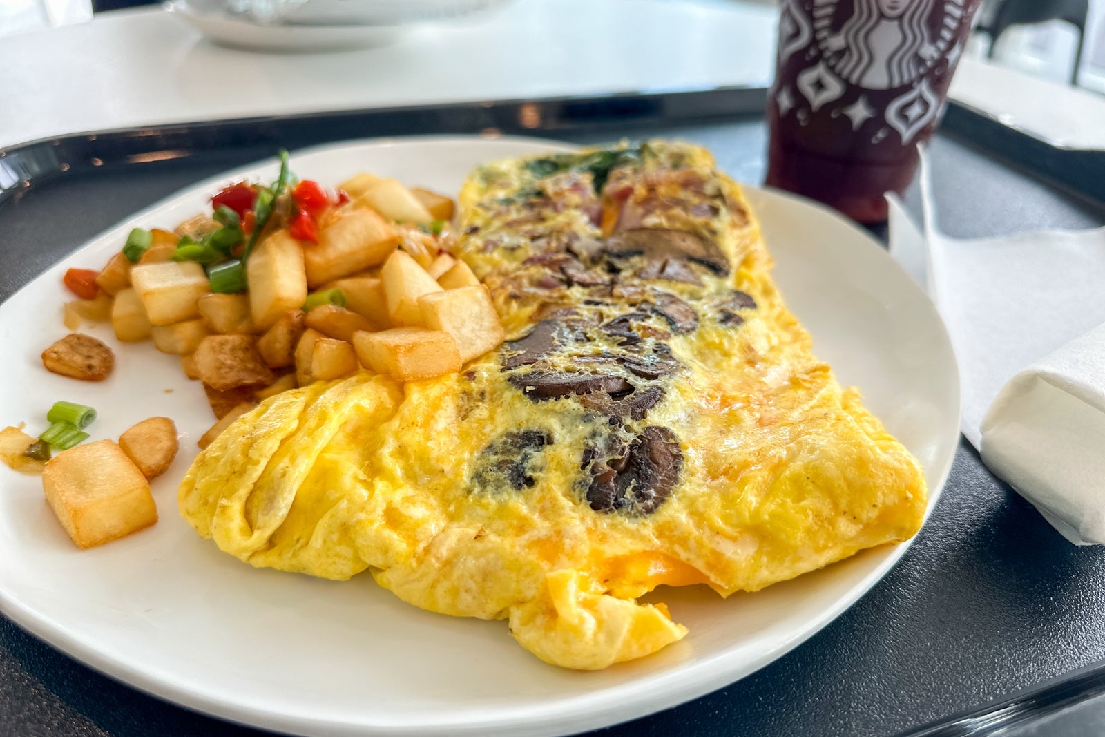 It's not often that a budget-tier theme park hotel has such a plethora of dining options. Universal's Aventura Hotel has quick-service and table-service options and a poolside lounge, lobby lounge and a Starbucks. Urban Pantry is the hotel's food hall, located in the lobby. Each stall offers different types of cuisine, including everything from sushi to stir fry to burgers. I visited Urban Pantry for breakfast and had the vegetarian folded eggs ($13.50). The portion size was huge, and my meal tasted fresh and delicious.