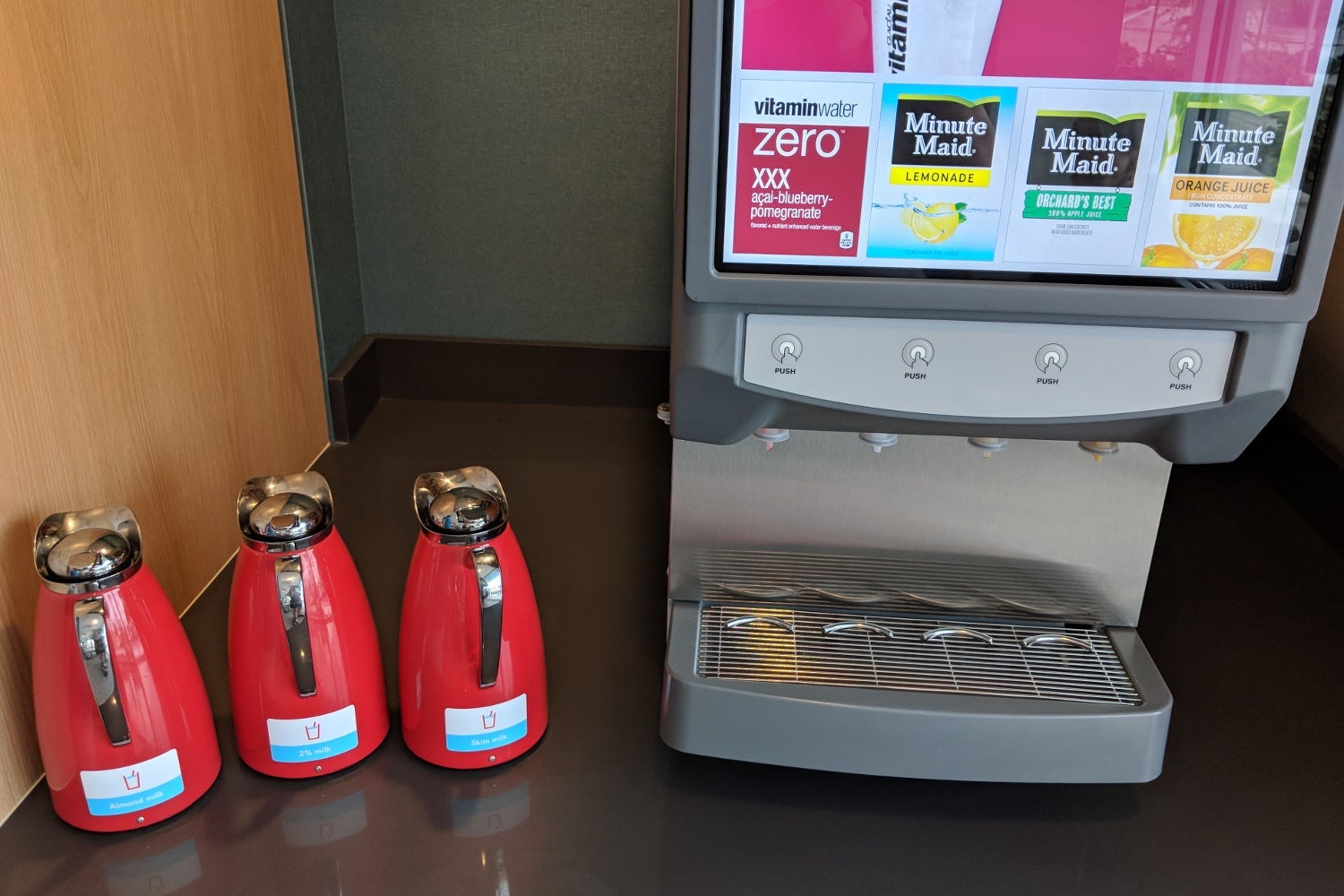 Breakfast was available in the lobby each morning from 7:00am to 10:00am, although the buffet wasn't packed either morning of our stay until around 10:15am. In addition to the coffee and water that were always available, apple juice, orange juice, lemonade, flavored water, almond milk, skim milk and 2% milk were also out during breakfast.