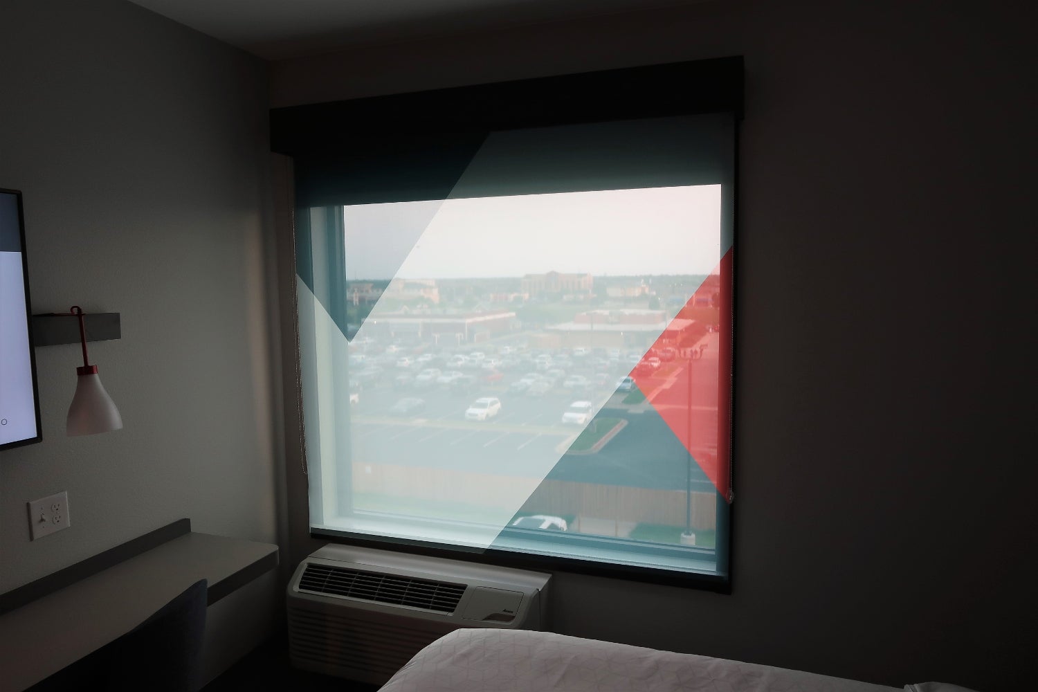 In general, we liked the room. The blackout curtain kept the room very dark, and the transparent curtain provided the right level of daylight while maintaining privacy. However, our room became increasingly humid throughout our stay, and the desk was uncomfortable because of the A/C. And don't expect a room with a view, as all rooms at this property looked out over parking lots.