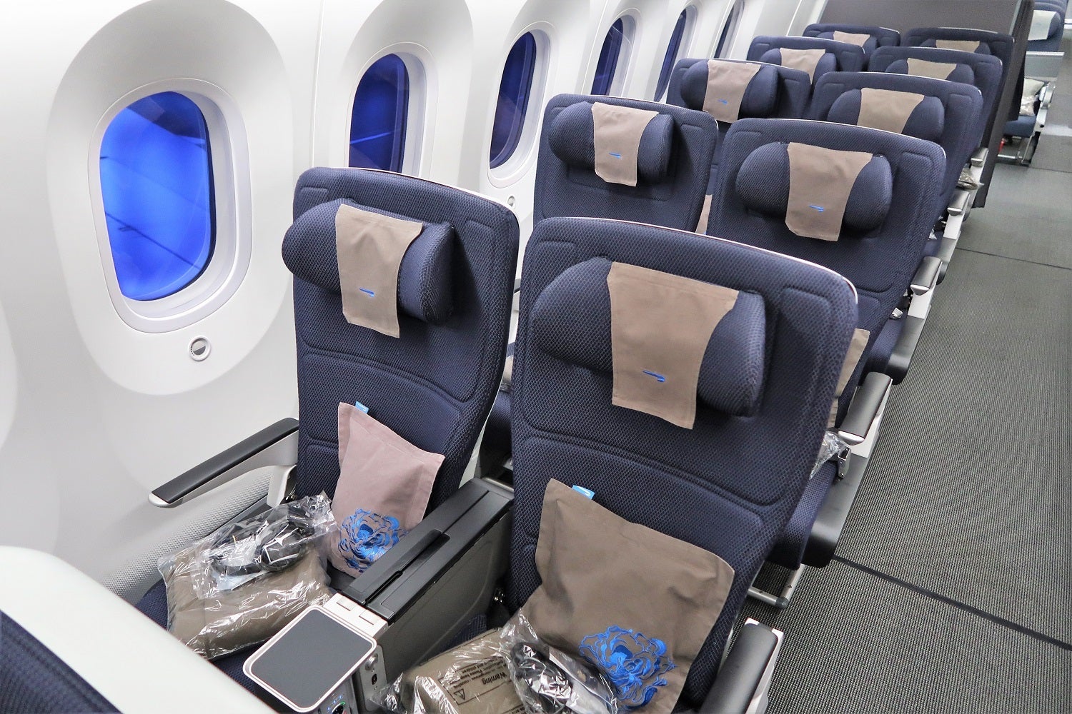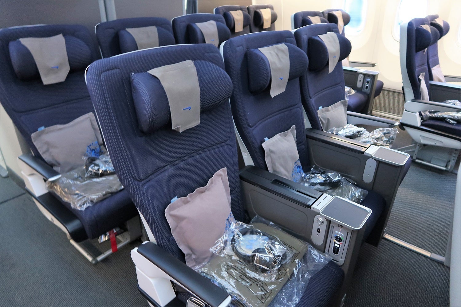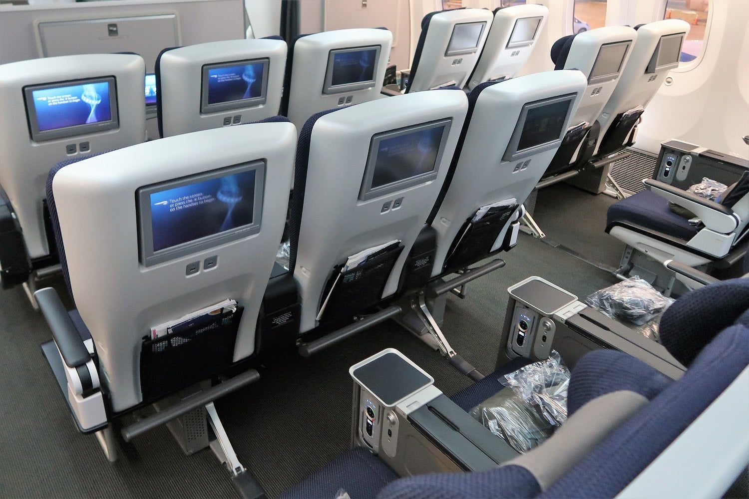 On the 787s, the World Traveller Plus cabin was arranged with seven seats in each row (2-3-2) vs. nine seats in each row (3-3-3) in economy. On the 747, World Traveller Plus had eight seats per row (2-4-2) compared with 10 per row (3-4-3) in economy. On both the Dreamliner and the Queen of the Skies, British Airways' unremarkable business class had the same number of seats in each row as premium economy. But there was an important distinction between lie-flat seats in business class and recliner seats in premium economy.