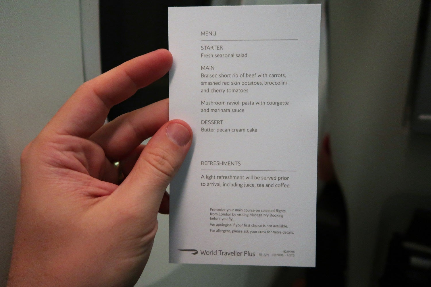 Passengers were provided small menu cards during boarding. They could make even the smallest hands feel large.