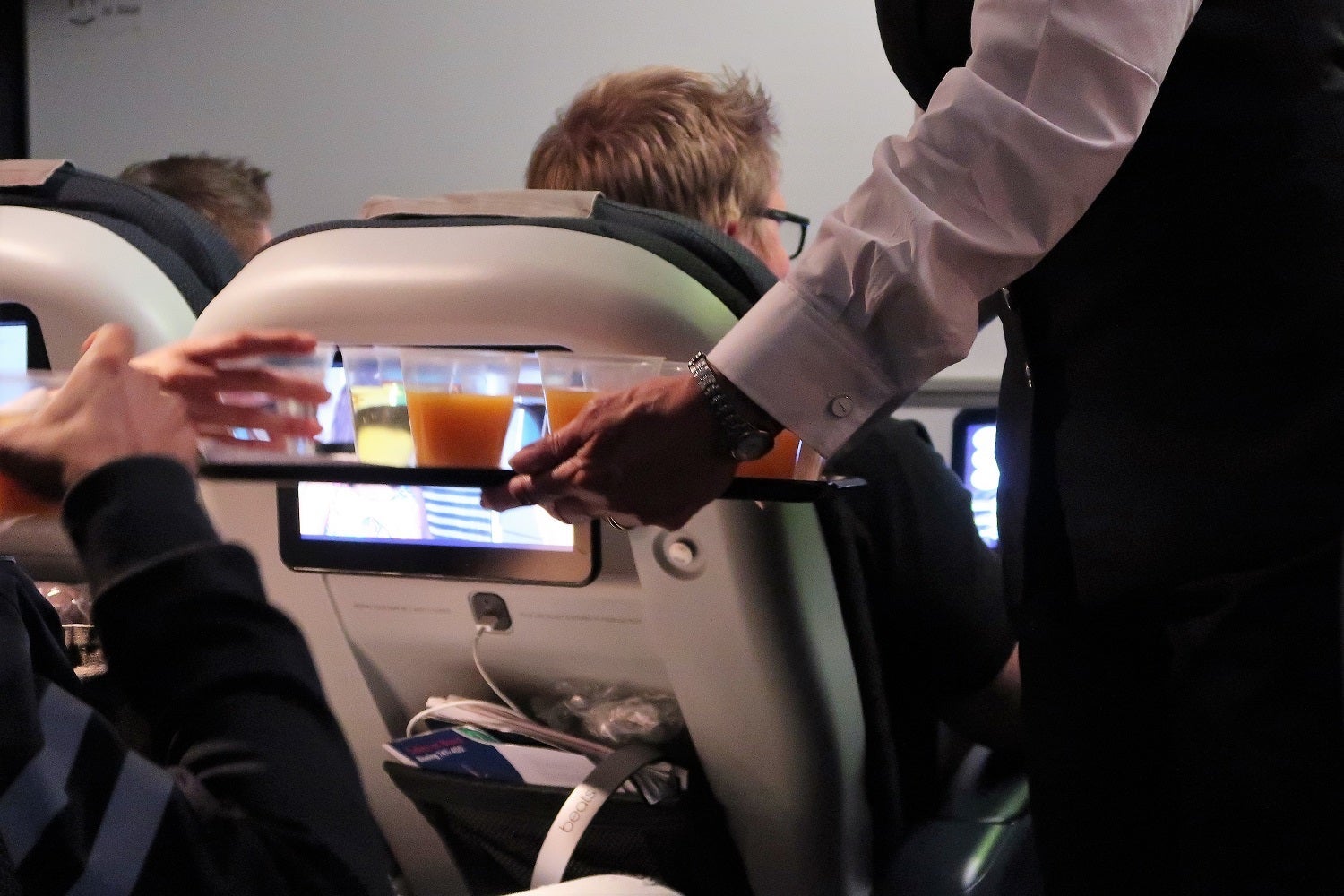 Catering can vary from route to route, but I didn't expect the drink selection to vary as well. On my London-San Jose and Los Angeles-London routes, water, juice and sparkling wine were available as a pre-departure beverage. But the flight attendant reported that they weren't allowed to serve alcohol until they left the ground in Montreal, blaming "customs" — likely meaning that the airline would have to pay a fine or fee for serving alcohol on the ground in Canada, rather than an actual prohibition.
