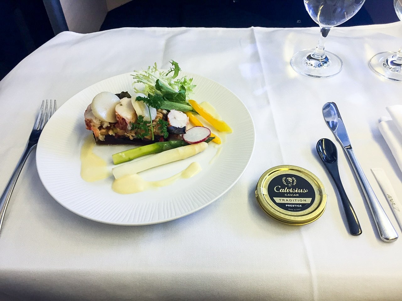 While I would've preferred to see a caviar course like Korean serves on some of its other routes, the appetizer of tuna tartare, avocado and seared scallops was one of the freshest and most flavorful dishes I've ever been served in the air.
