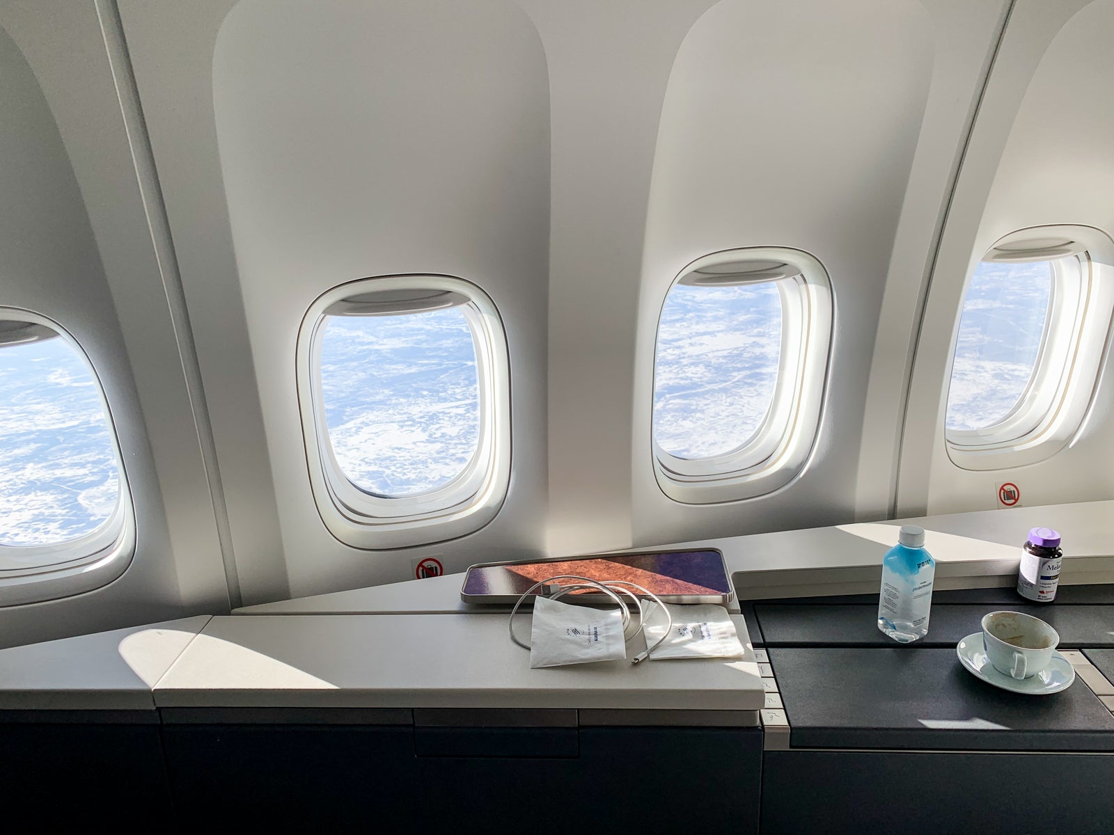 High walls, closing doors and the way the seats hug the fuselage to create a wide aisle all make this cabin look more like a private jet than the 368-seat superjumbo it really is. The fact that I had the cabin (and therefore the crew) entirely to myself on the 15-hour flight from Atlanta to Seoul, save for a on off-duty pilot resting in one of the seats, only helped amplify my experience.