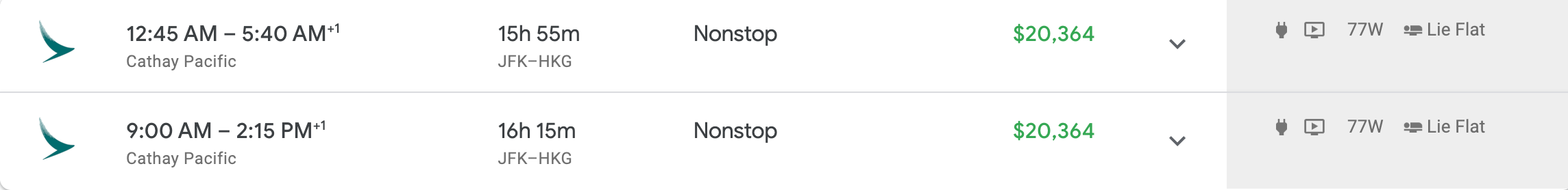 Routes and aircraft: Cathay Pacific flies first-class-equipped 777-300ERs between Hong Kong and the following U.S. cities: San Francisco, Los Angeles, Chicago, New York-JFK and Boston.