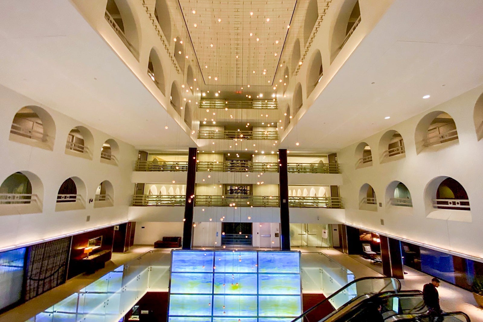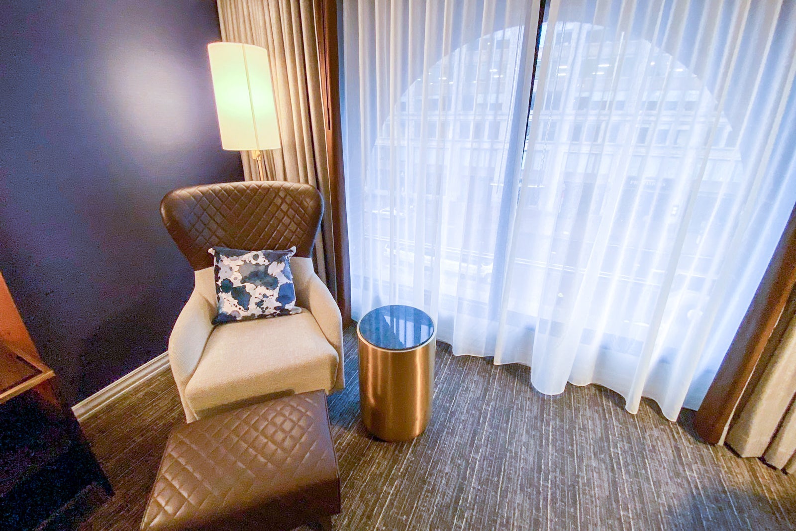 You enter the hotel on the ground floor, home to a Starbucks and the hotel ballrooms. To get to the check-in desk, you take an escalator up to the desk, which is somewhat hidden in the corner of the lobby. I didn't notice it at first as the elevator bank blocked it, so I could have stumbled around to find it, had I not checked in digitally.