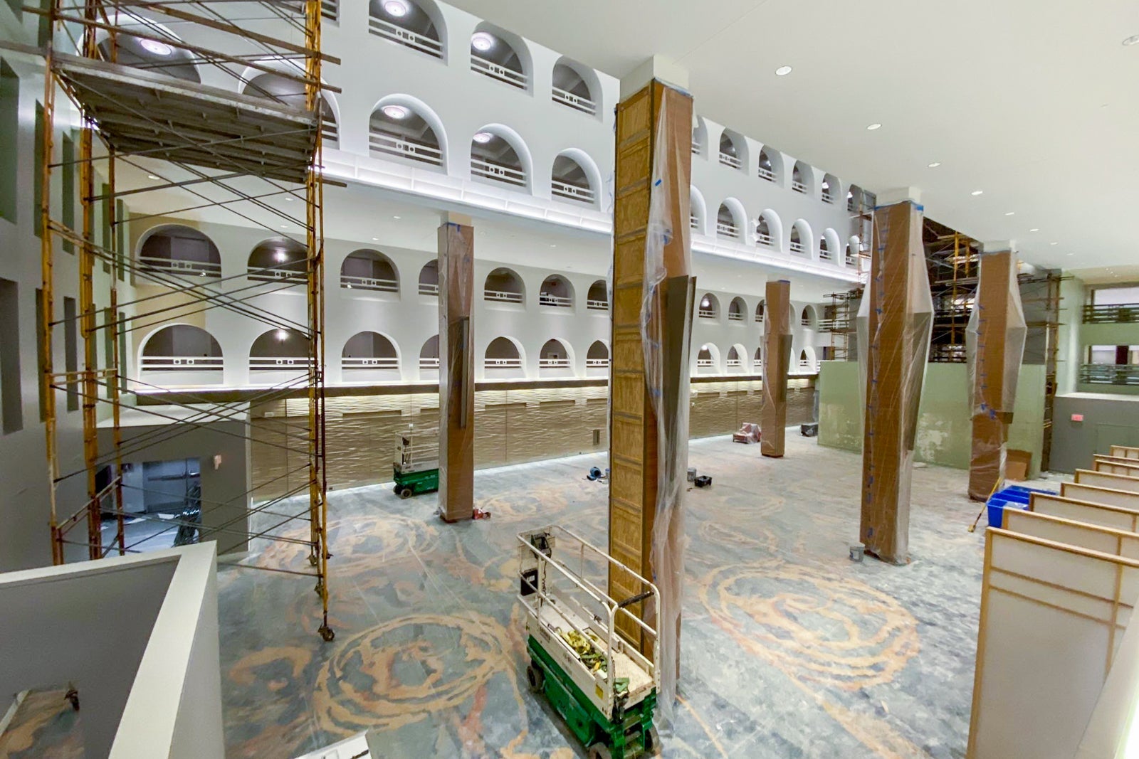 Many of the rooms overlook the ballroom area, an eyesore in January because it was under construction. The arches with views to one of the ballrooms are a nice architectural detail, but I can also see it becoming noisy during an event -- if and when those ever return.