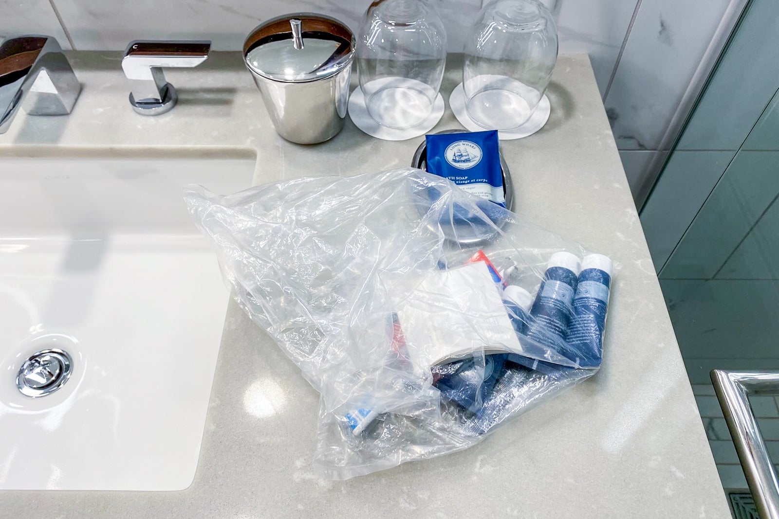 There were plenty of toiletries provided for my stay but some were still in a crumpled plastic bag on the counter.
