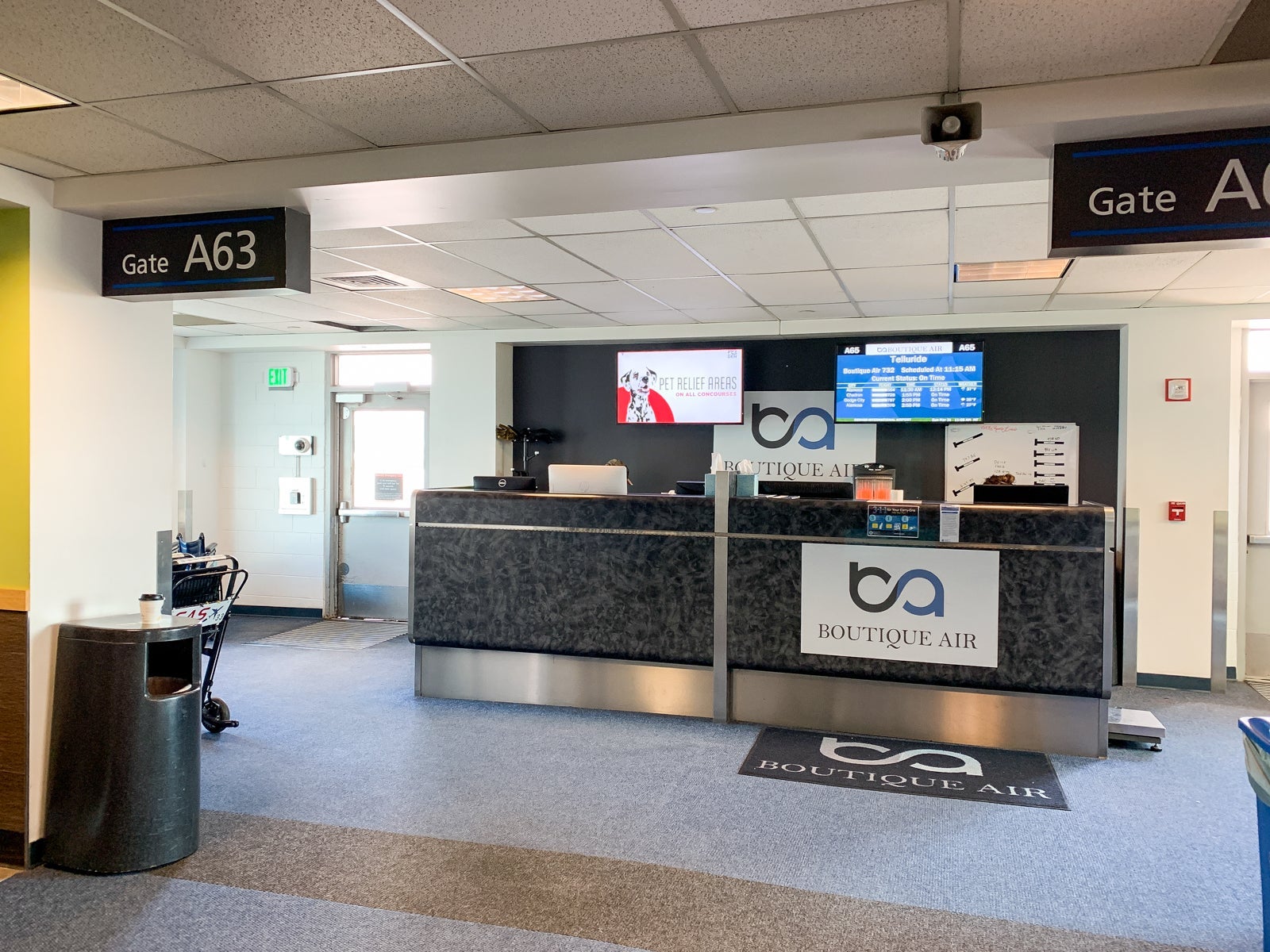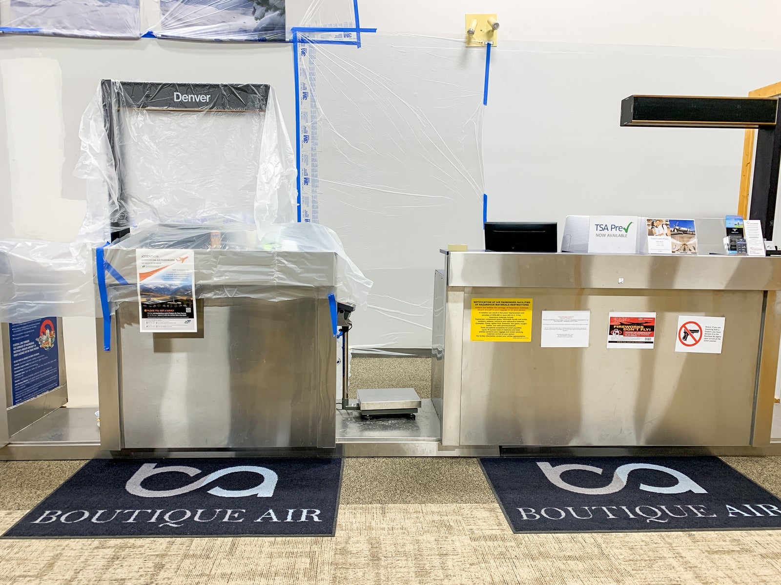 Boutique Air's operations are, well, boutique. My husband and I landed after a mainline United flight from Houston to Denver at Denver's Terminal B and took the airport train to catch our Boutique flight out of Terminal A. More specifically, the bowels of Terminal A. We went all the way to the end of the terminal, down an escalator, through some somewhat unmarked doors and then down a long, empty hallway. There we found Boutique Air's gate, essentially a desk and a door out to the tarmac. There were no concessions all the way down there, but there was a large and almost always empty restroom, so no wait for bathroom breaks.