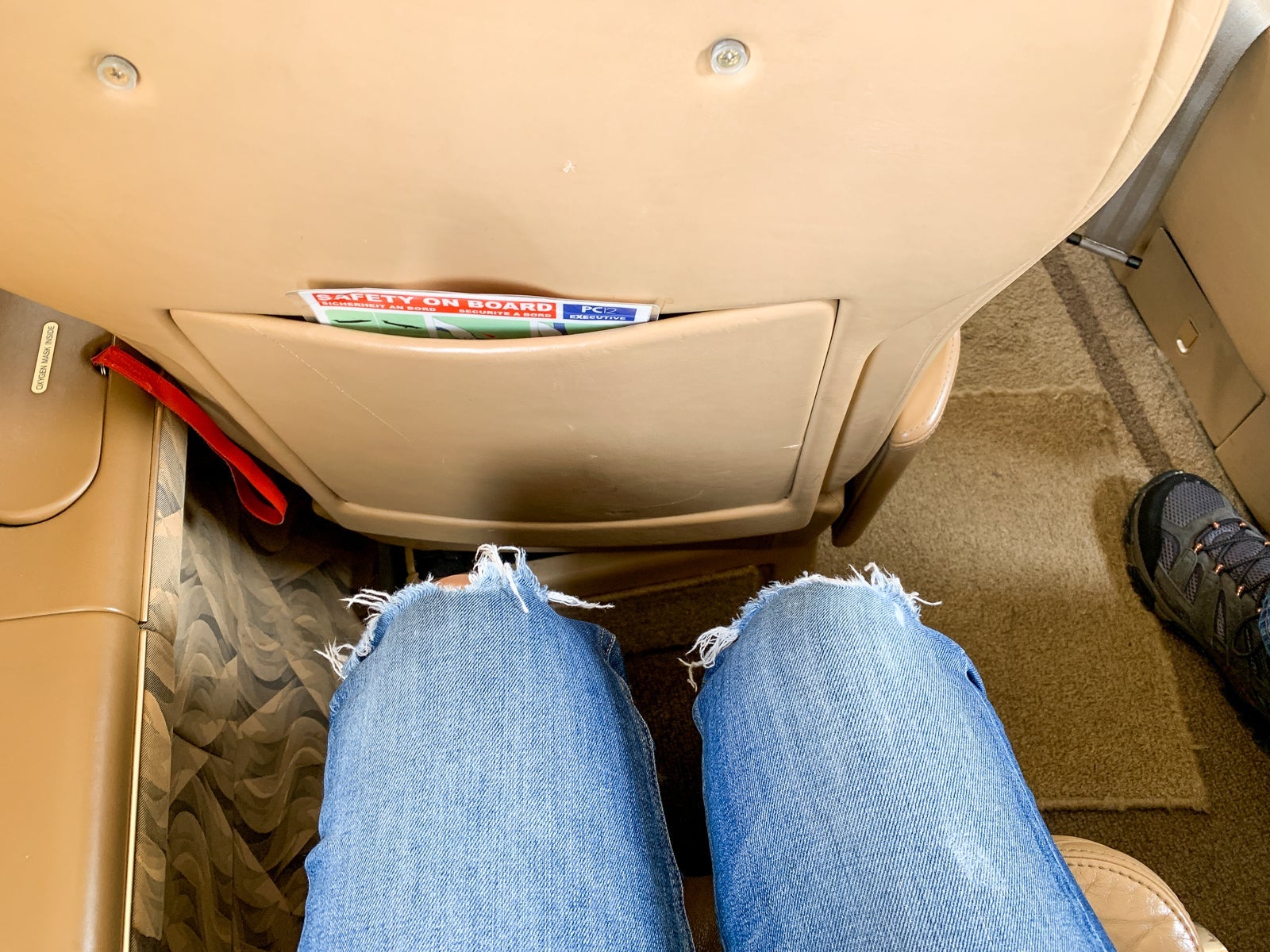 Speaking of bucket, we felt bumps in the air much more than on a larger aircraft. We had relatively smooth flights, but I still felt queasy at times. The captain was sure to point out the location of the air-sickness bags on both flights before takeoff.