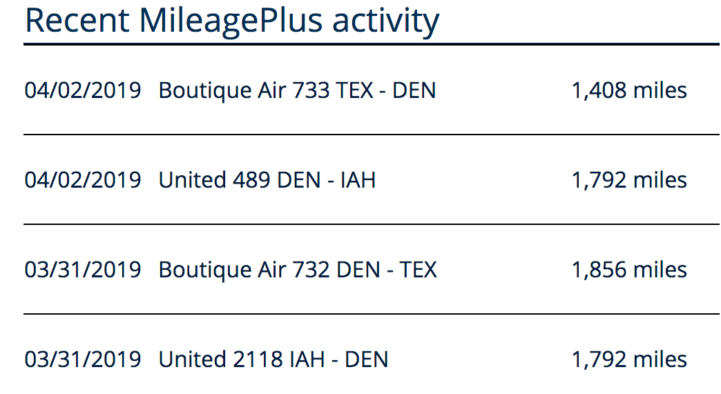 I also earned a total of 6,848 redeemable miles on United as a Gold elite (worth $95), though note that the Boutique Air segments only awarded redeemable miles and not Elite Qualifying Miles or Elite Qualifying Segments. However, those flights did award Premier Qualifying Dollars. I'm also not 100% sure why I earned that many redeemable miles, as a United Gold elite should earn 8 miles per dollar spent, which would be a bit less than 6,848, but I'm not complaining.