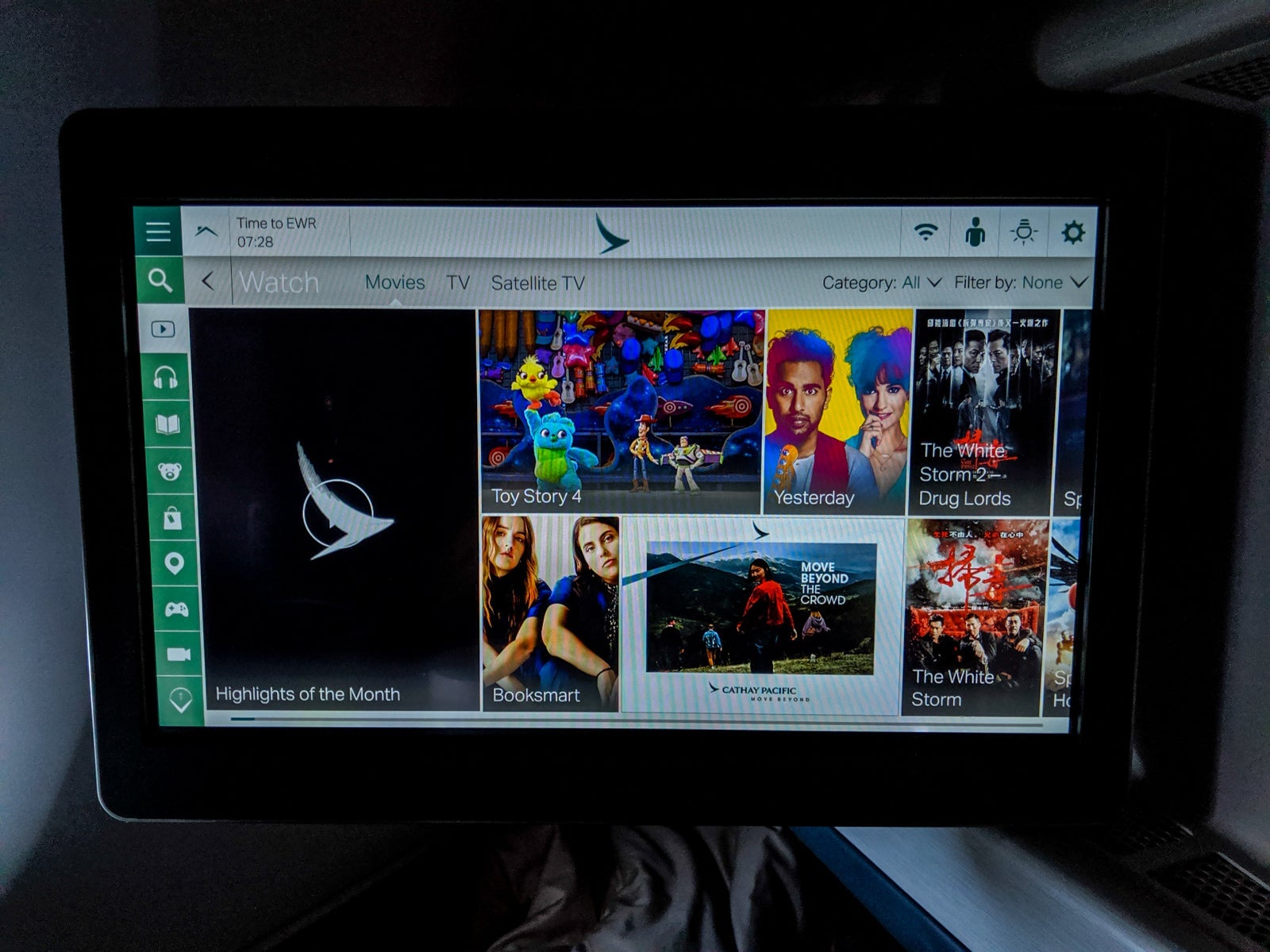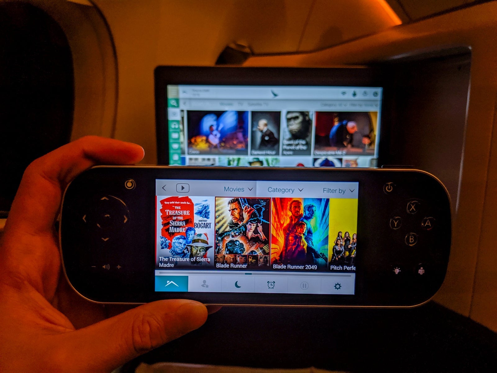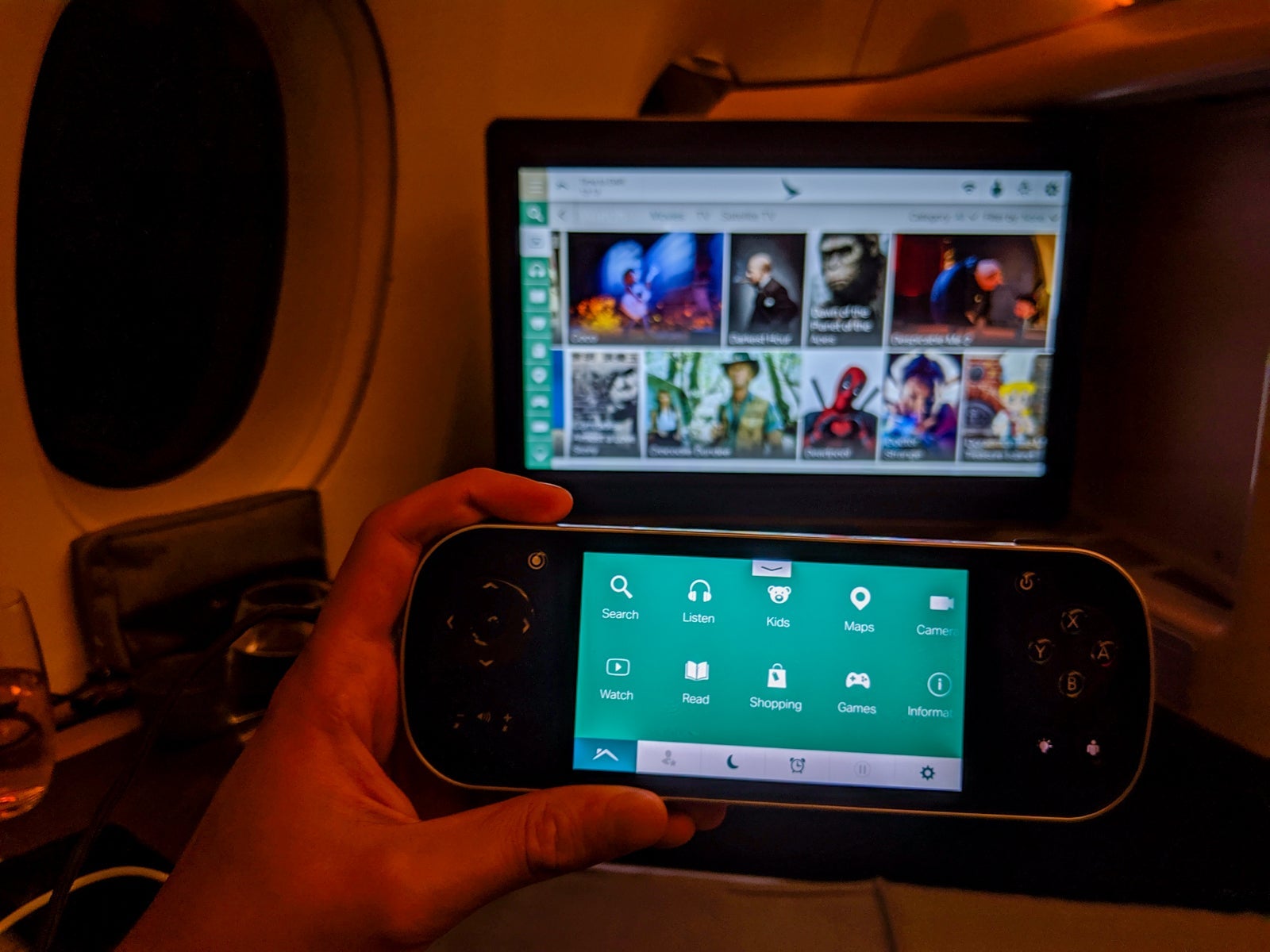 Though the screen could be controlled via touch, Cathay offered a digital remote that let you control the main screen without leaning forward and provided easy browsing to all of the IFE content while you watched on the main screen. It was actually quite convenient and made multitasking easy.