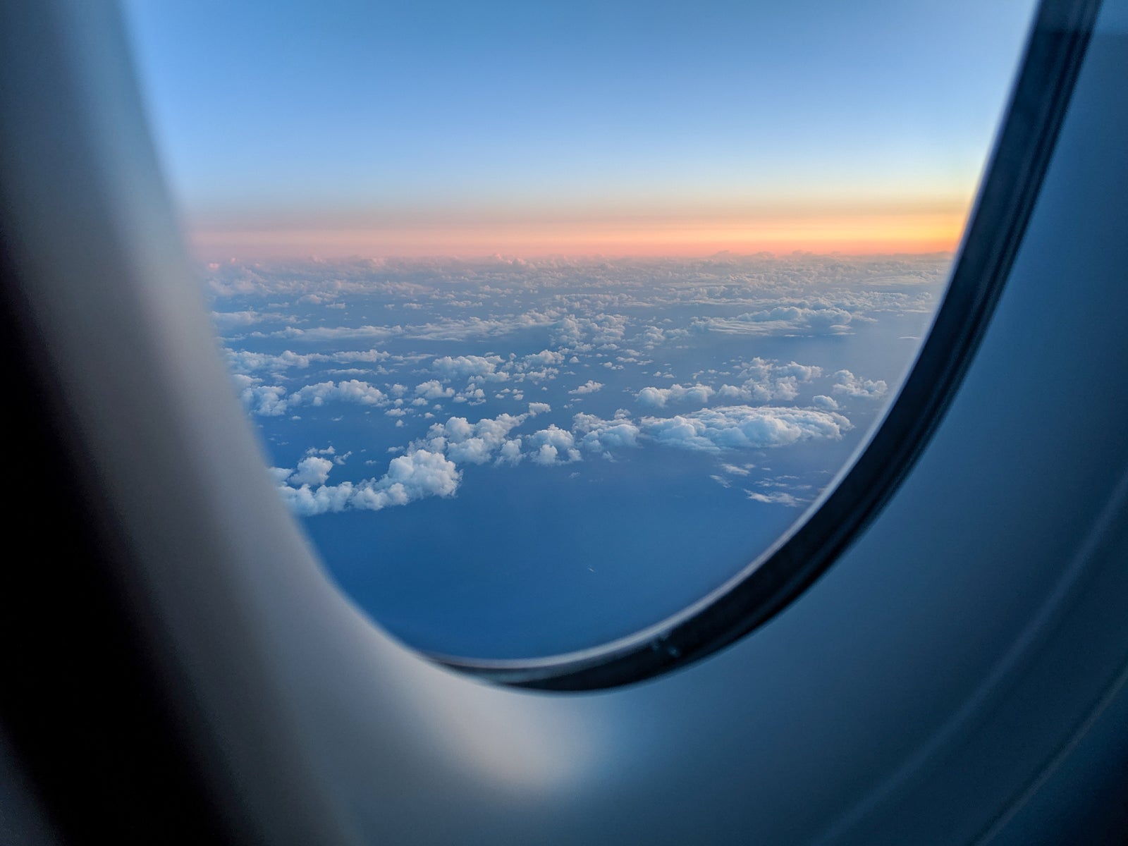 I woke up five hours later, slid open the shade and caught a sunrise as we passed the Aleutian chain.