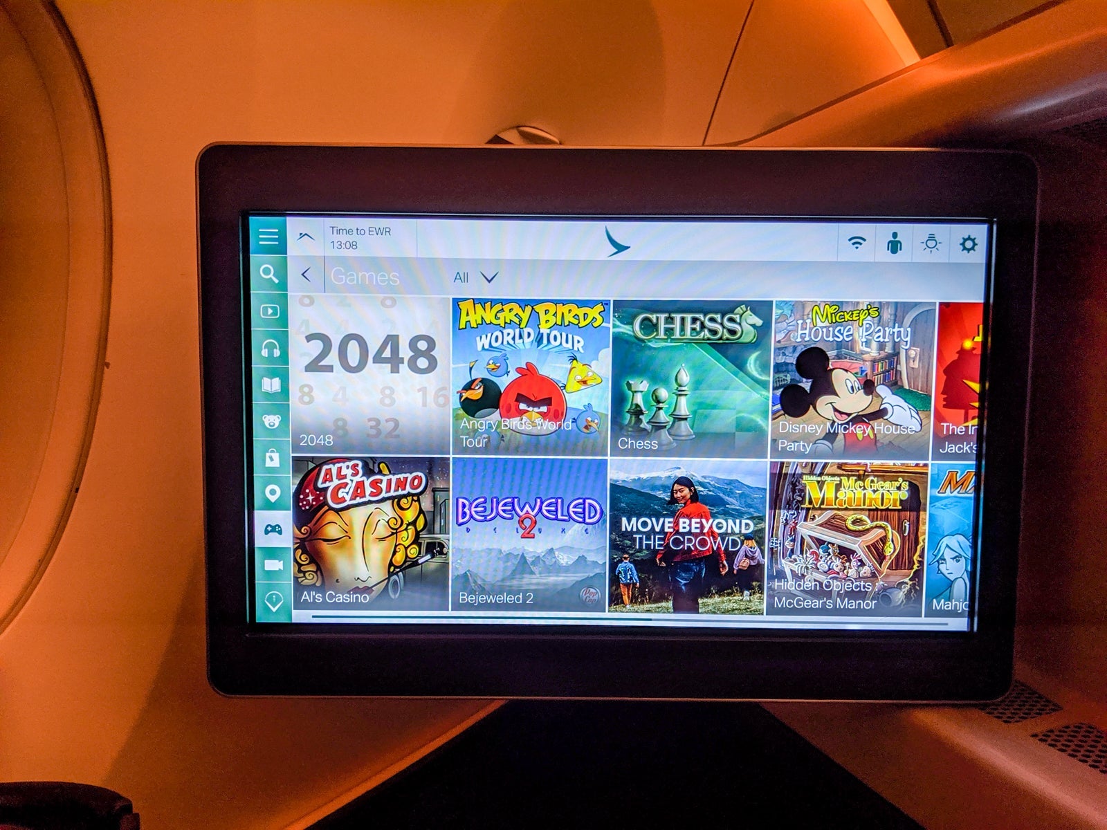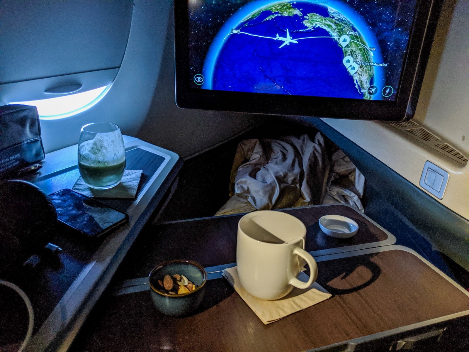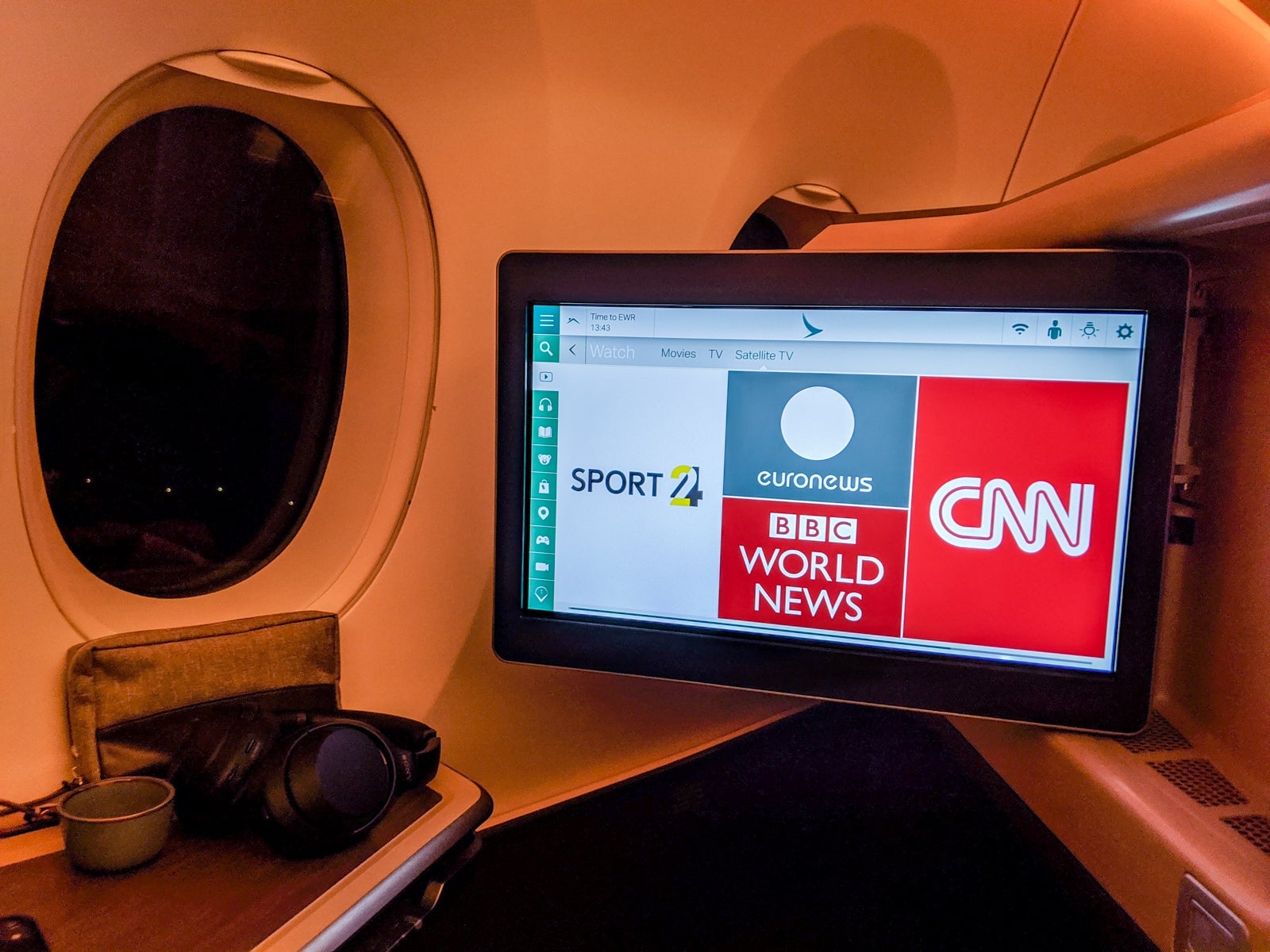 Two, the screen didn't doesn't tilt, making it harder to watch while in full bed mode, but I preferred saving lie-flat for sleeping anyway. Most premium cabin screens don't tilt, either, and I plenty enjoyed watching all flight long.