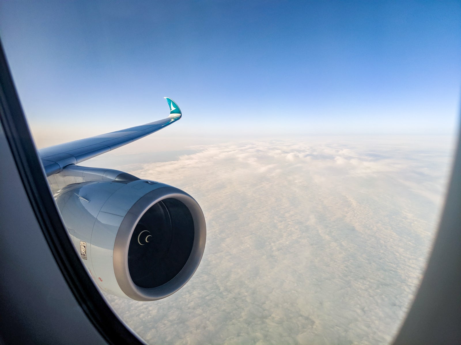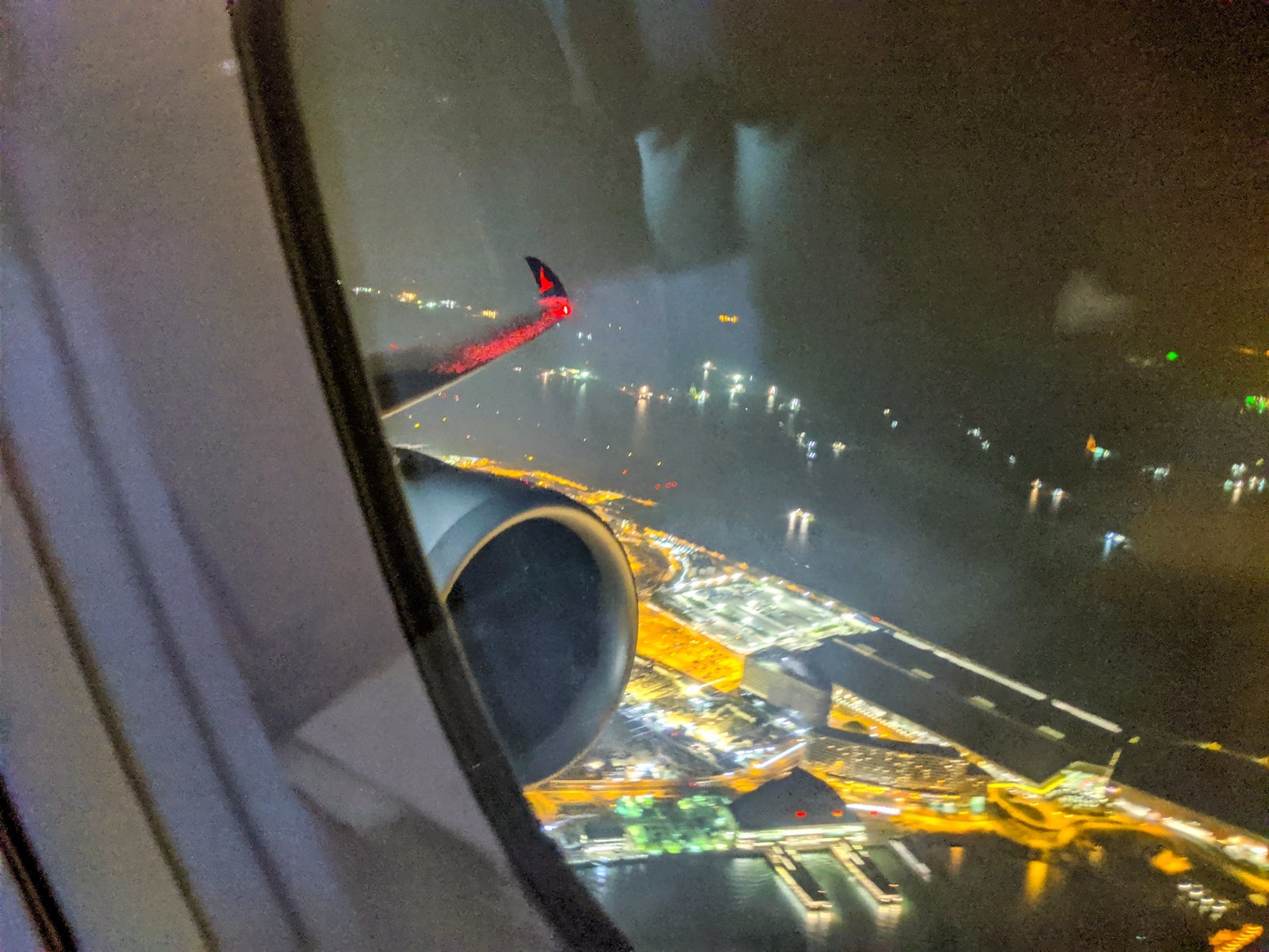 In the meantime, I snuck some #wingview photos by briefly popping up the window shade in the otherwise dark cabin as the sun set for the second time since boarding in HKG.