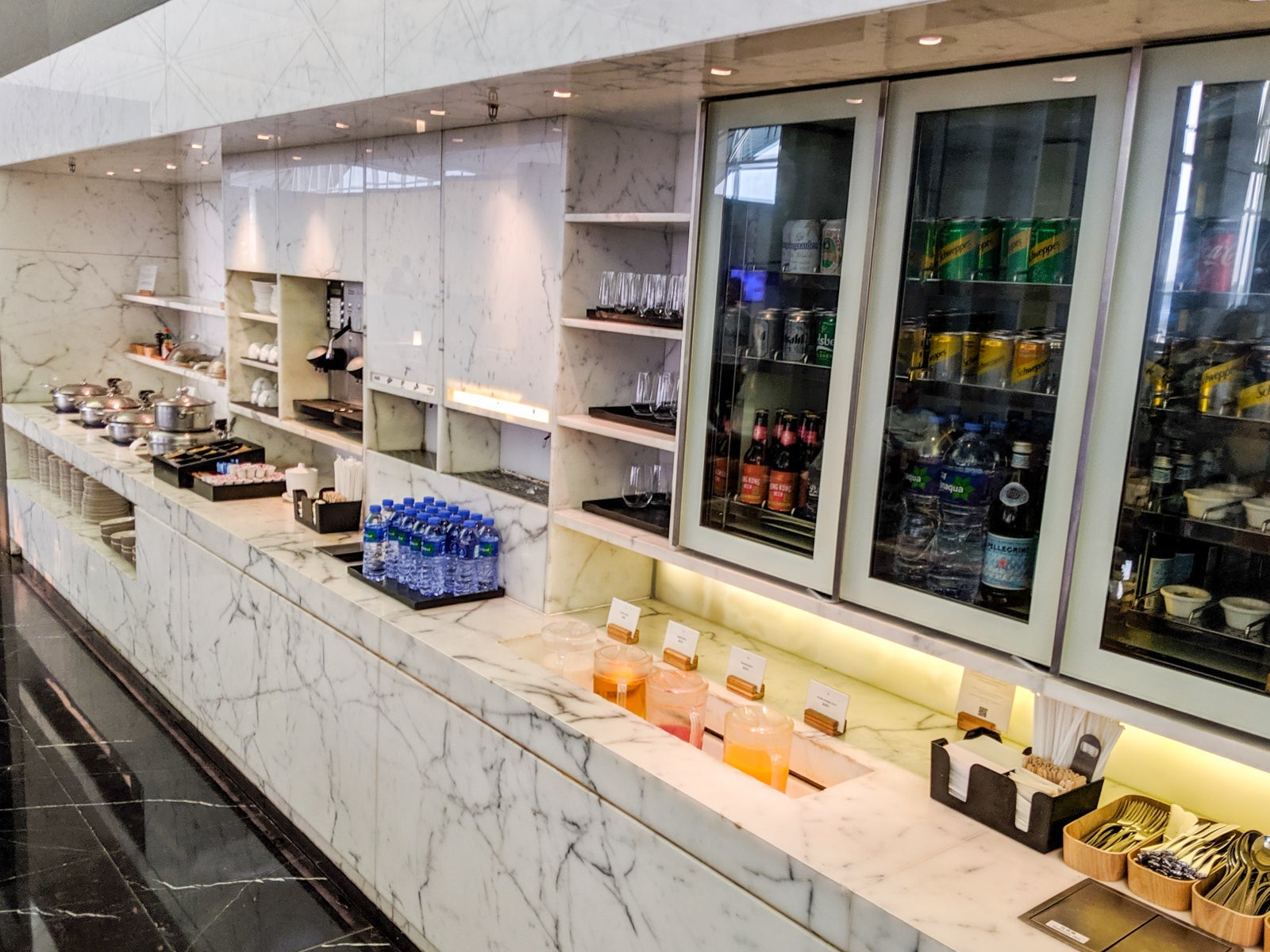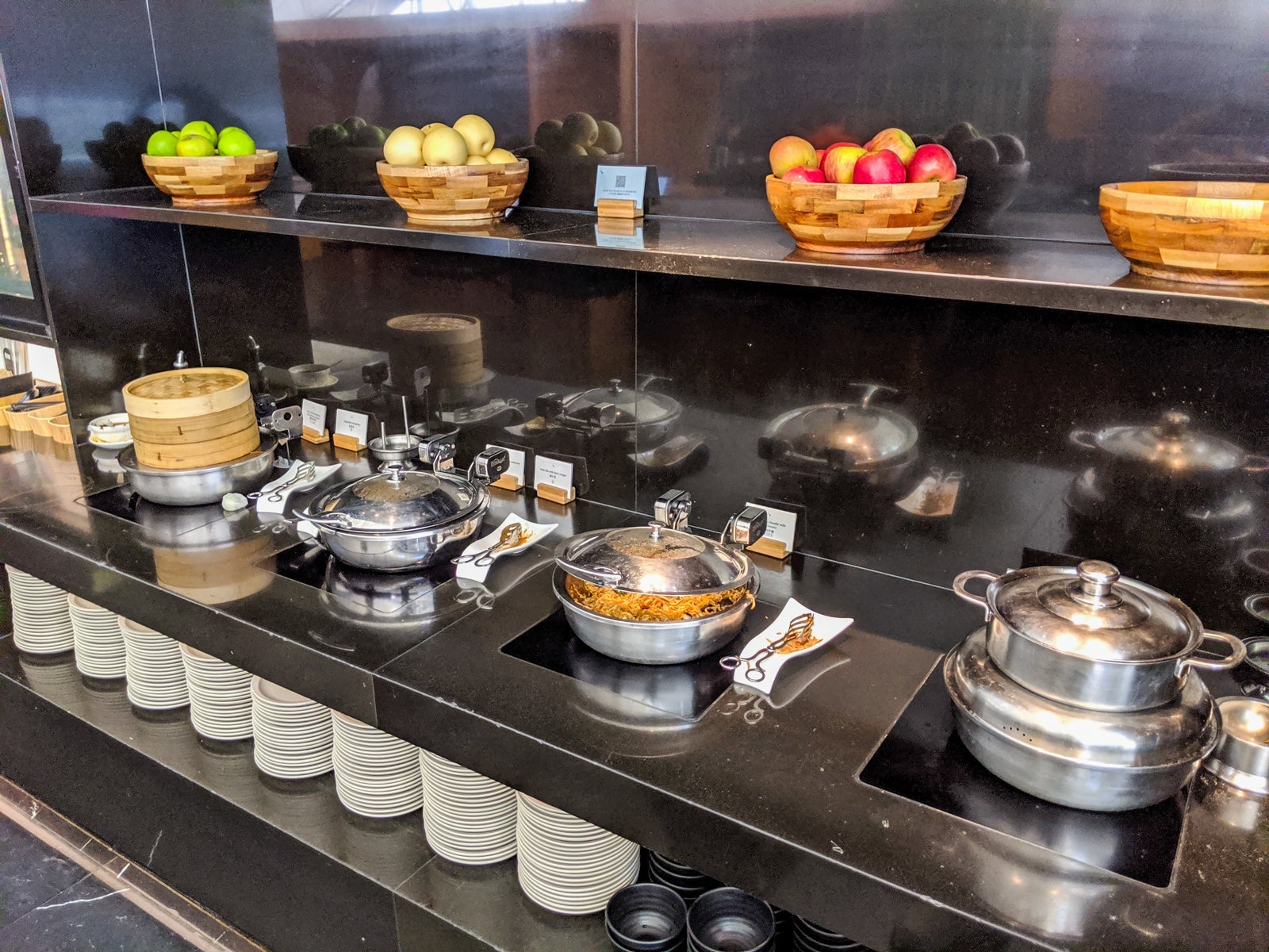 This buffet (yes, there were more than a couple in this lounge) offered primarily Western options. Fruit, water, soft drinks and other nonalcoholic beverages were available here, as well. Suffice it to say, you could easily fill up on food and drink here if you just wanted to sleep on the flight. And by fill up, I mean have a several-course meal.