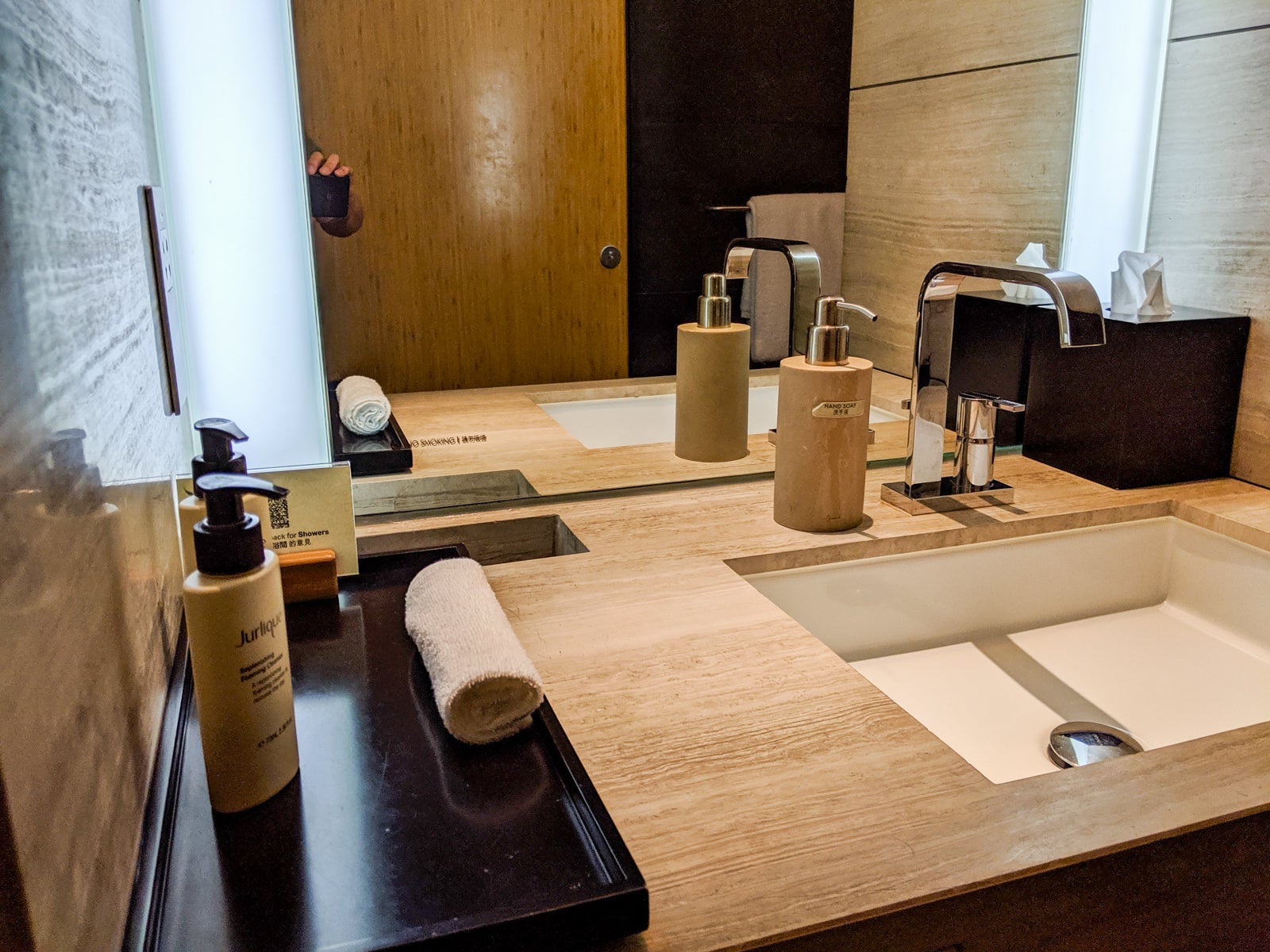 I counted 10 showers, all cleaned between uses and with a special shower reception desk at the back of the lounge. There was no wait, and everything was in pristine condition and stocked with Jurlique lotion, soap and shampoo.