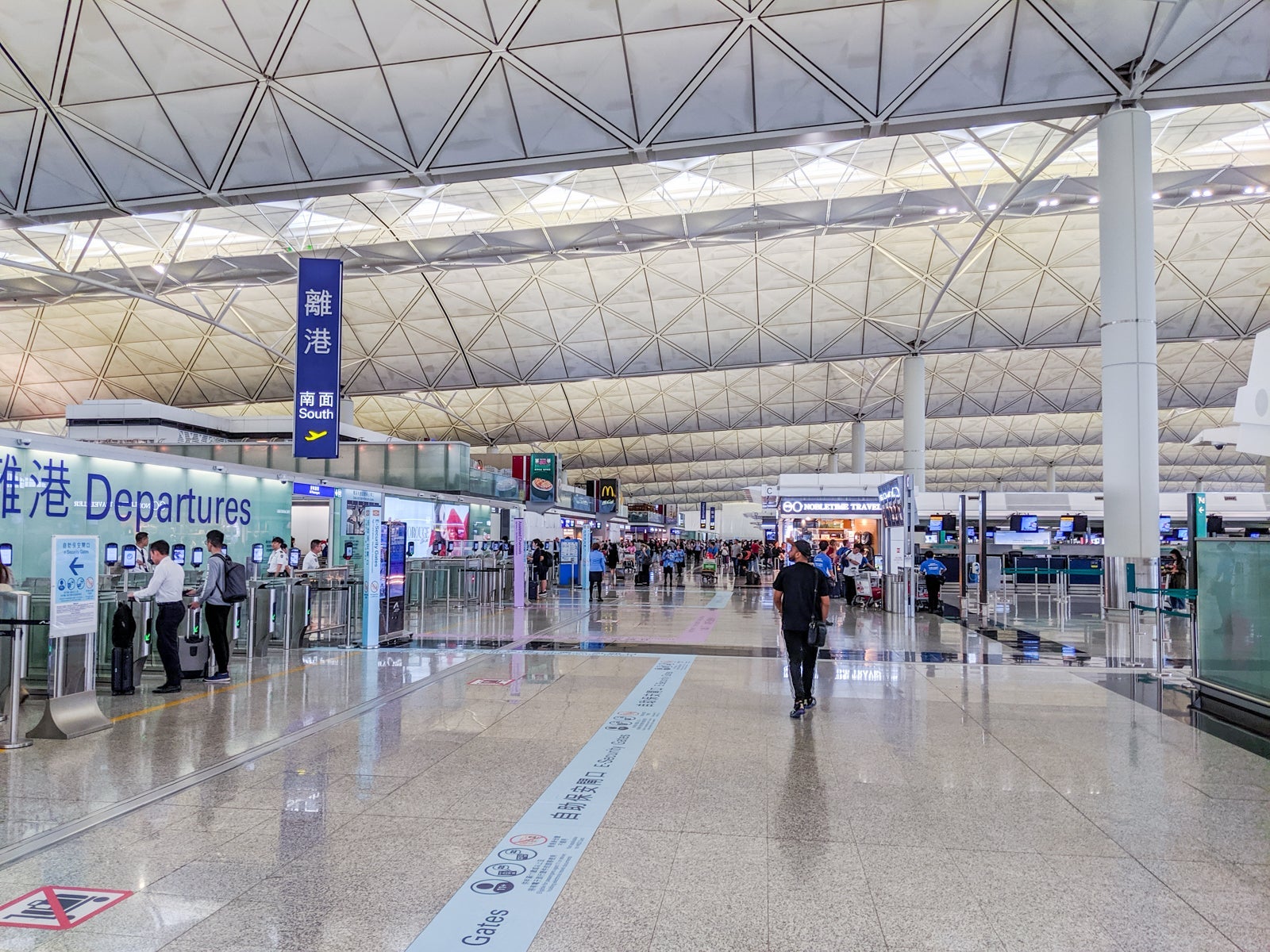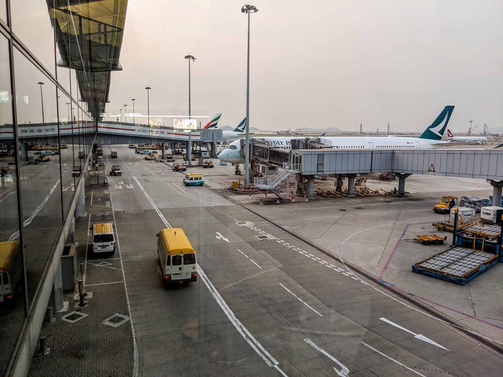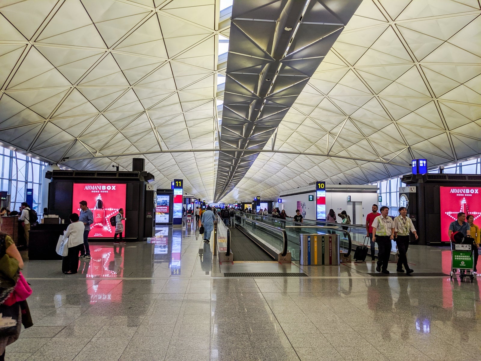 Five minutes later, after a quick passport check and efficient security screening, it was lounge time. The airport is indeed huge, but the recent drop in Hong Kong tourism became apparent, and the airport seemed particularly empty.