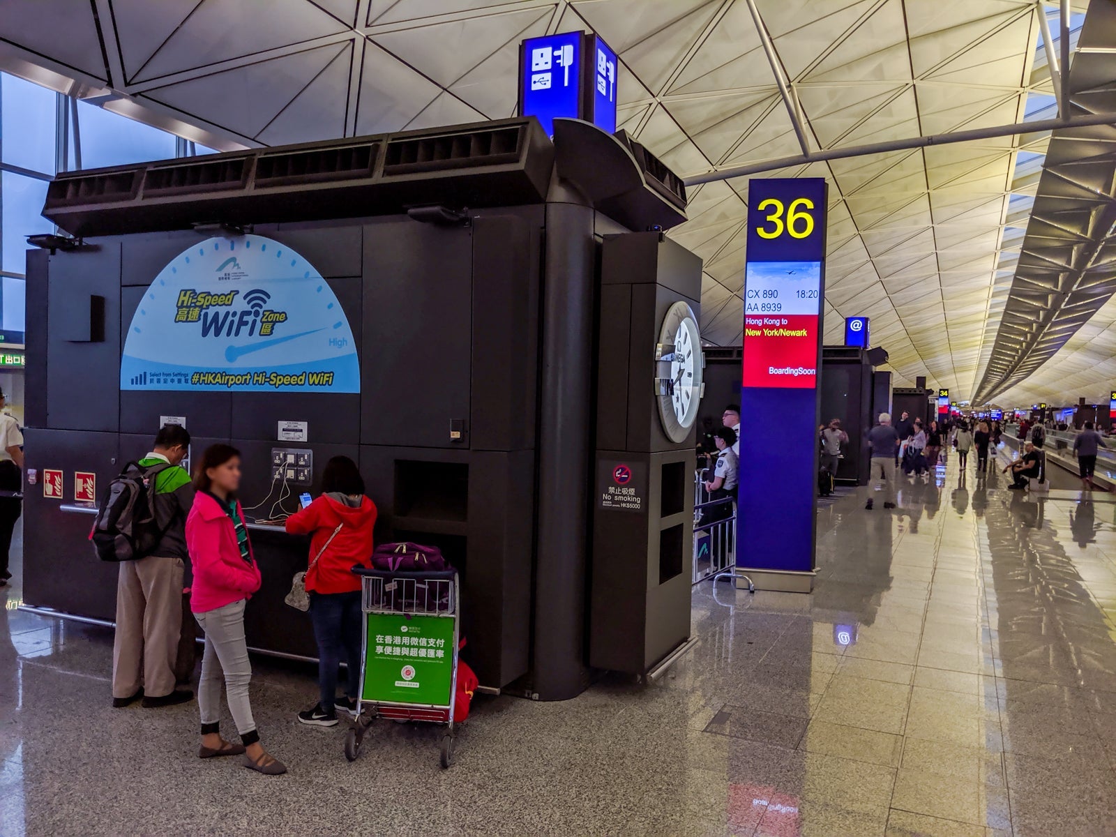 There was no dedicated business-class seating area, but that figured, since Cathay's business-class lounges are where passengers are expected to spend their time anyway. Free Wi-Fi was also offered terminal-wide.
