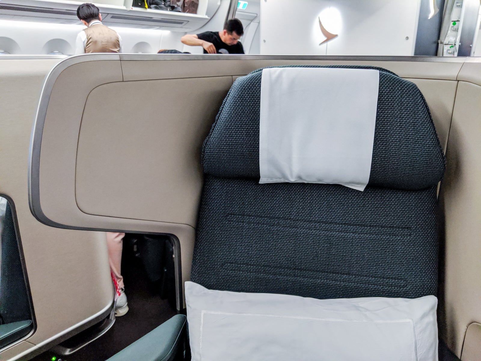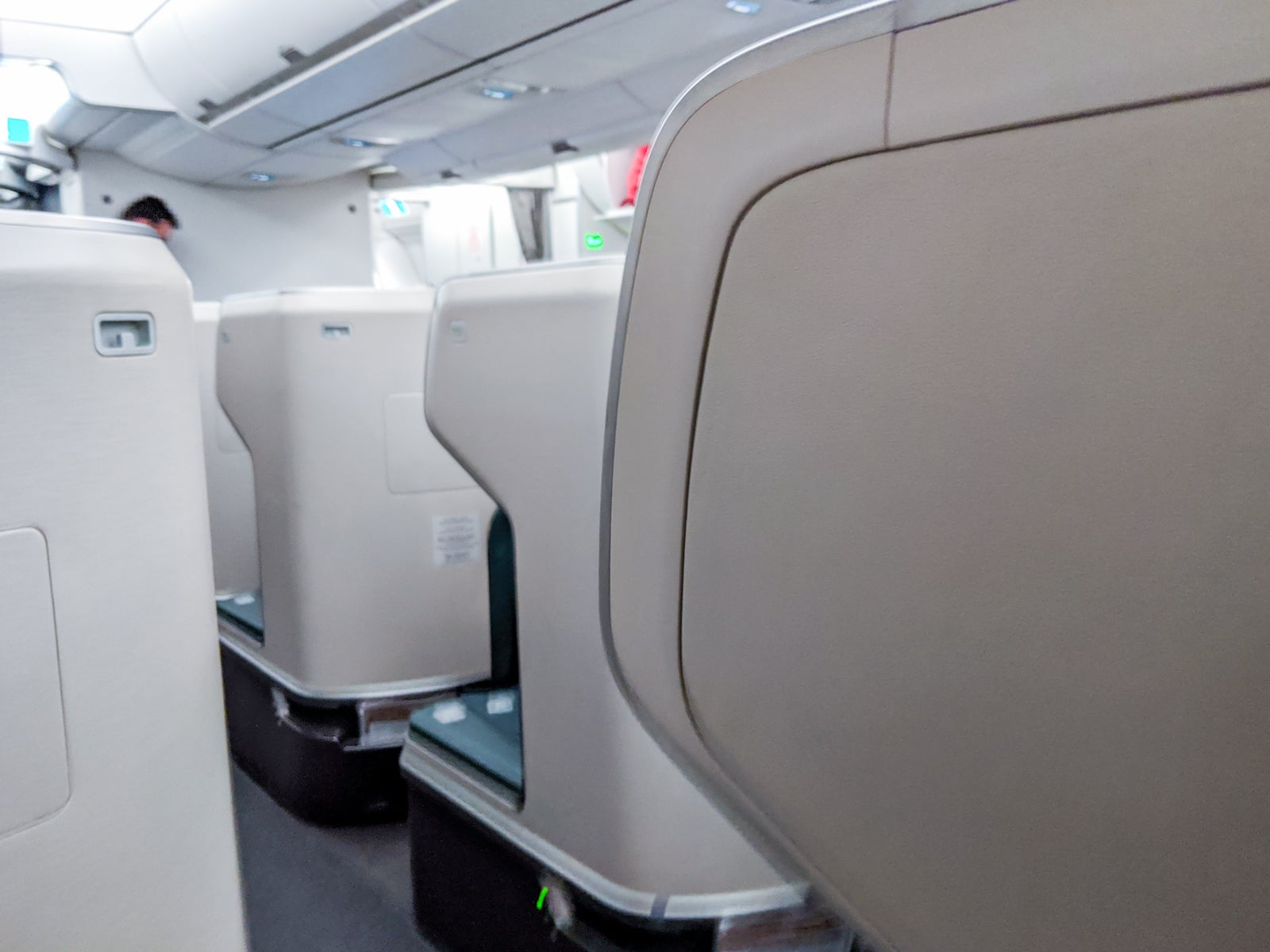 The green fabric seats were comfortable and featured a signature large privacy visor and made each seat feel quite private. My seat had no noticeable wear and tear. Notably, Cathay didn't install personal air vents for its A350s, similar to the 777-300ERs.