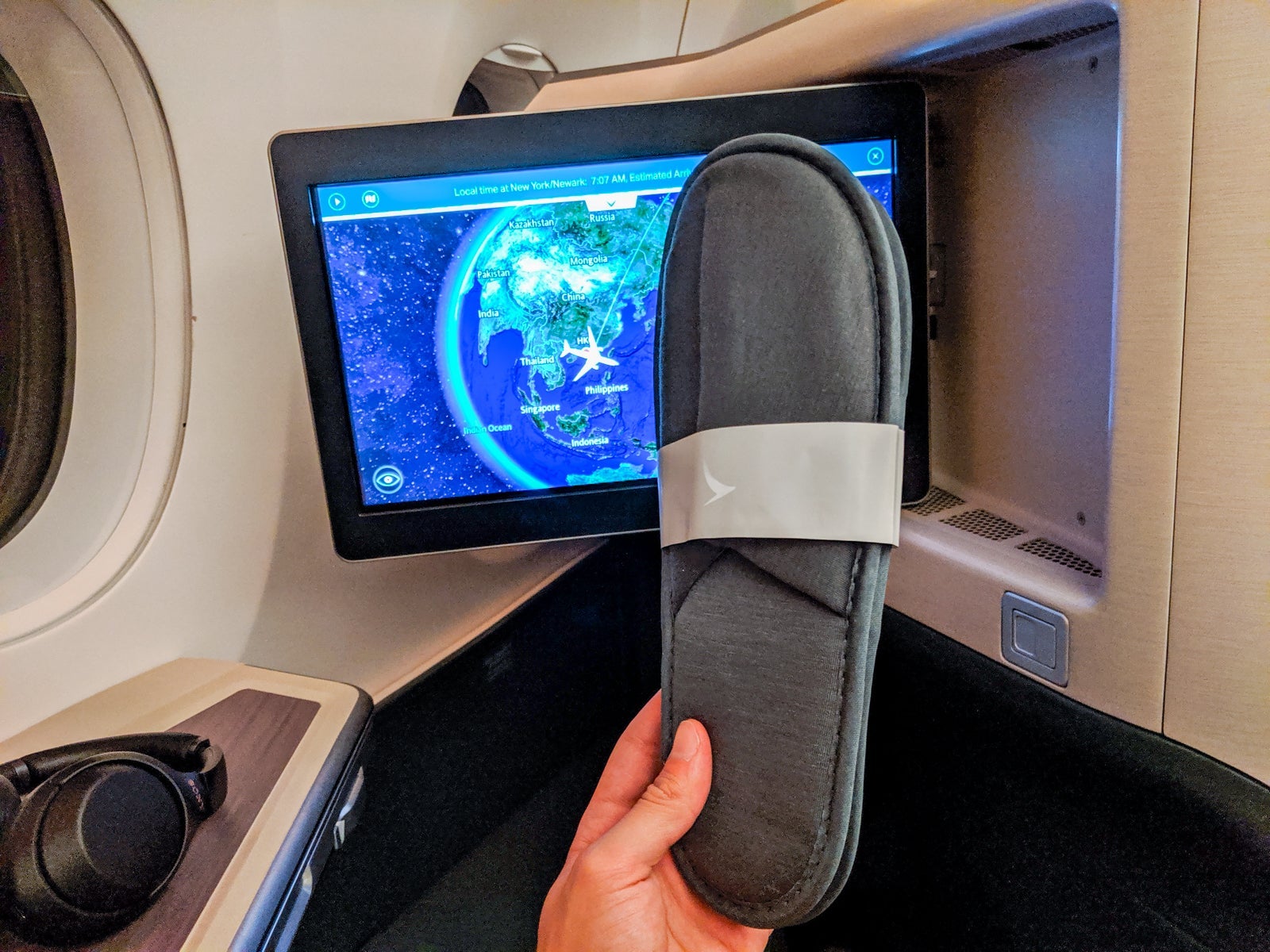 Cathay 890 pulled into the gate at Newark's Terminal B at 10 p.m. local time, 10 minutes ahead of schedule. I arrived rested enough (it was still Monday, the same day that we left), well-fed and grateful to have finally flown the nonstop from Hong Kong.