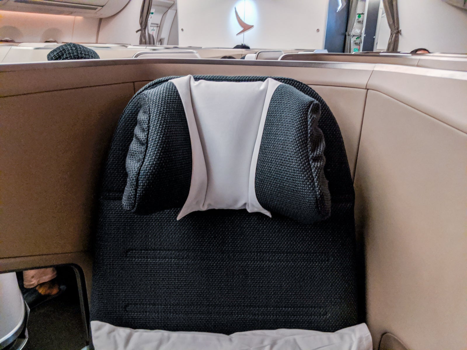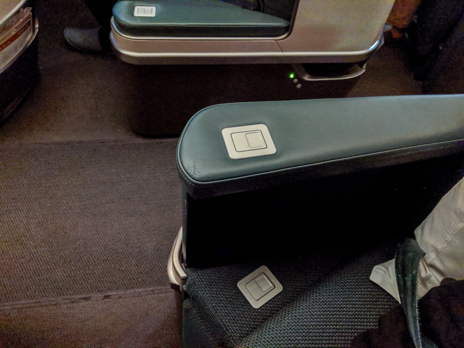 Thee footwell itself felt spacious, too (I'm a U.S. size 10), and the updated seat design made each seat feel roomier than most, particularly around the legs while in lie-flat mode.