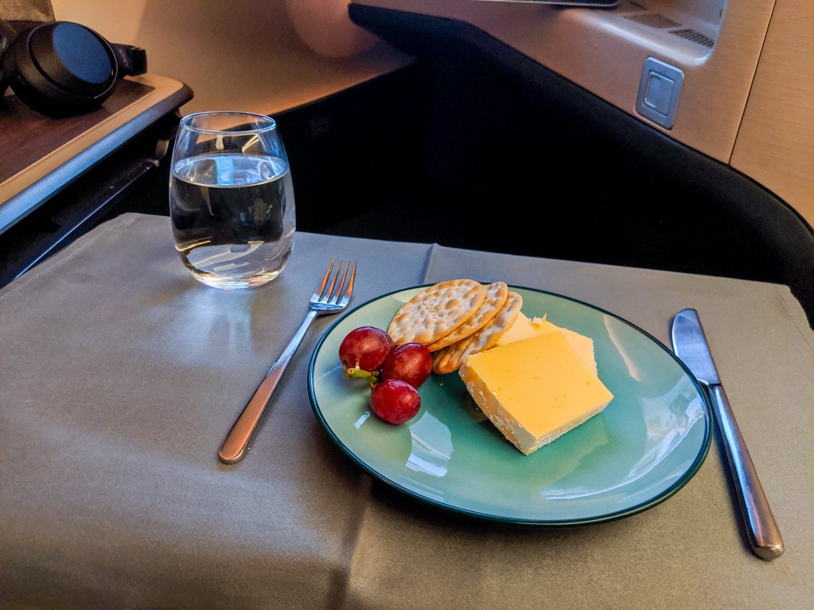 After finishing the main course, I was given a cheese assortment served with Carr's crackers and grapes, which proved simple and delicious. Fruit had also been an option, but no one offered them.