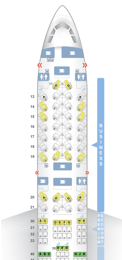 For decades, the carrier used mighty 747s as the backbone for long-haul flights, but in the past decade has phased them out in favor of four-class 777-300ERs and, more recently, three-class A350s. It was on these 777s that Cathay installed its version of the reverse-herringbone model that US Airways pioneered in 2009. Cathay began retrofitting its fleet in 2011, and since then the seat has gained wild popularity among passengers and airlines, from the U.S. to China.