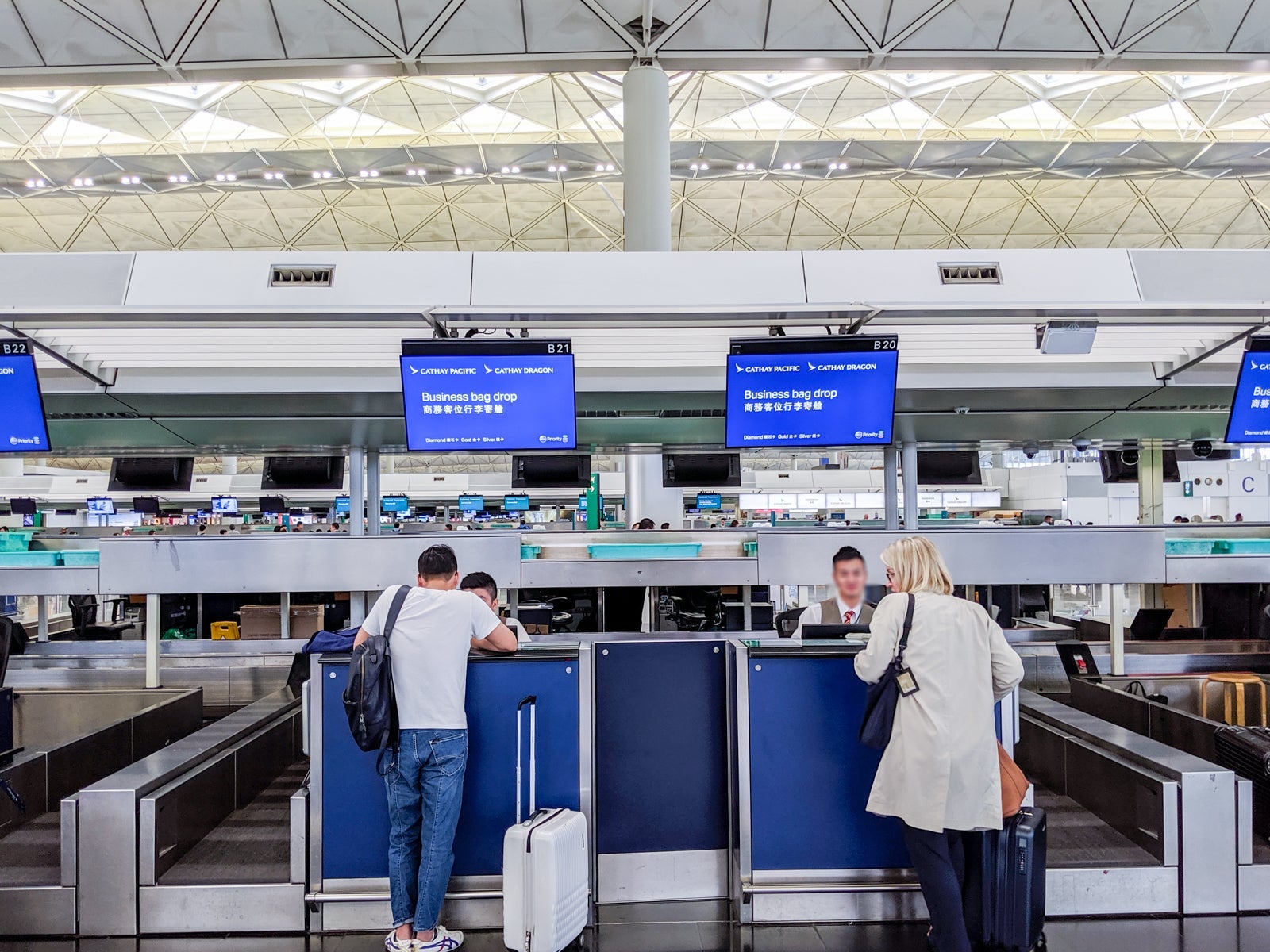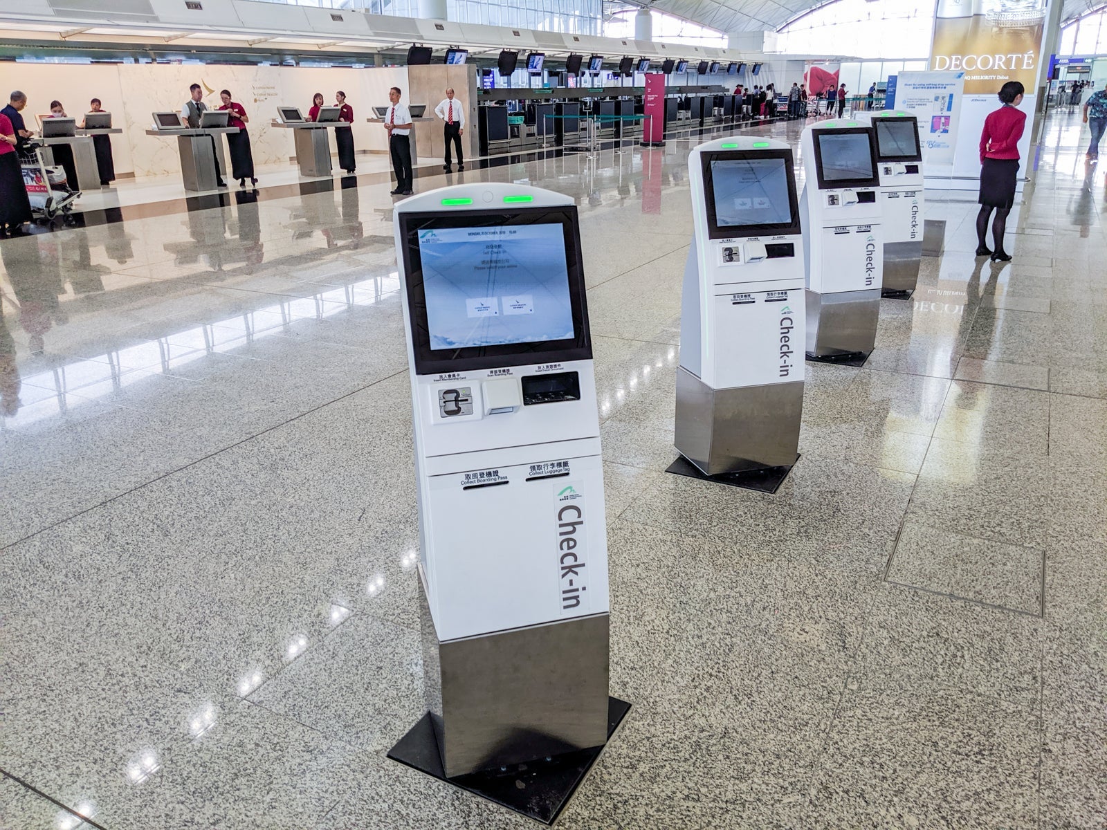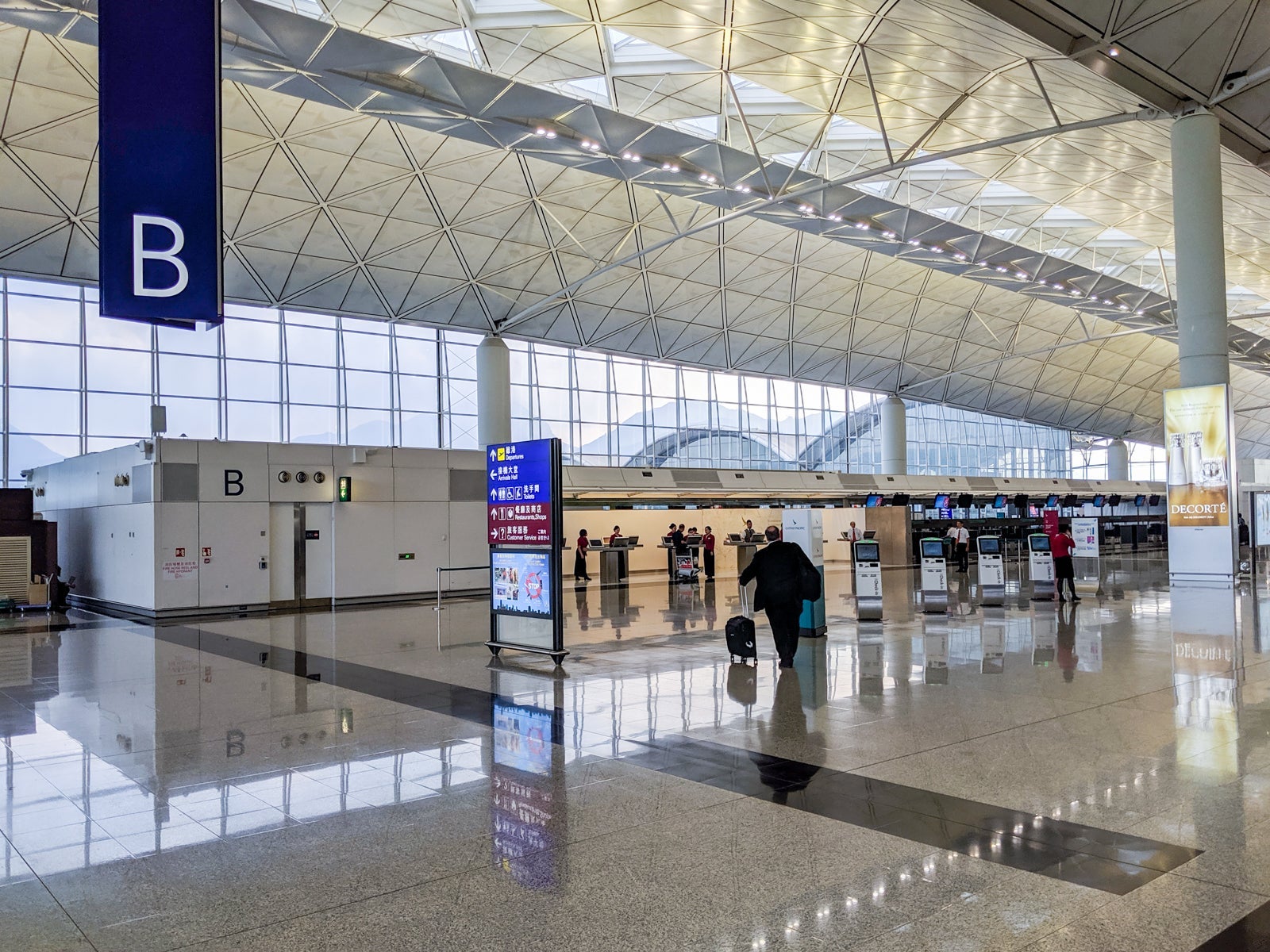 Near the dedicated first-class area, the B Zone also offered several self-serve kiosks near a rather empty check-in and bag-drop area.