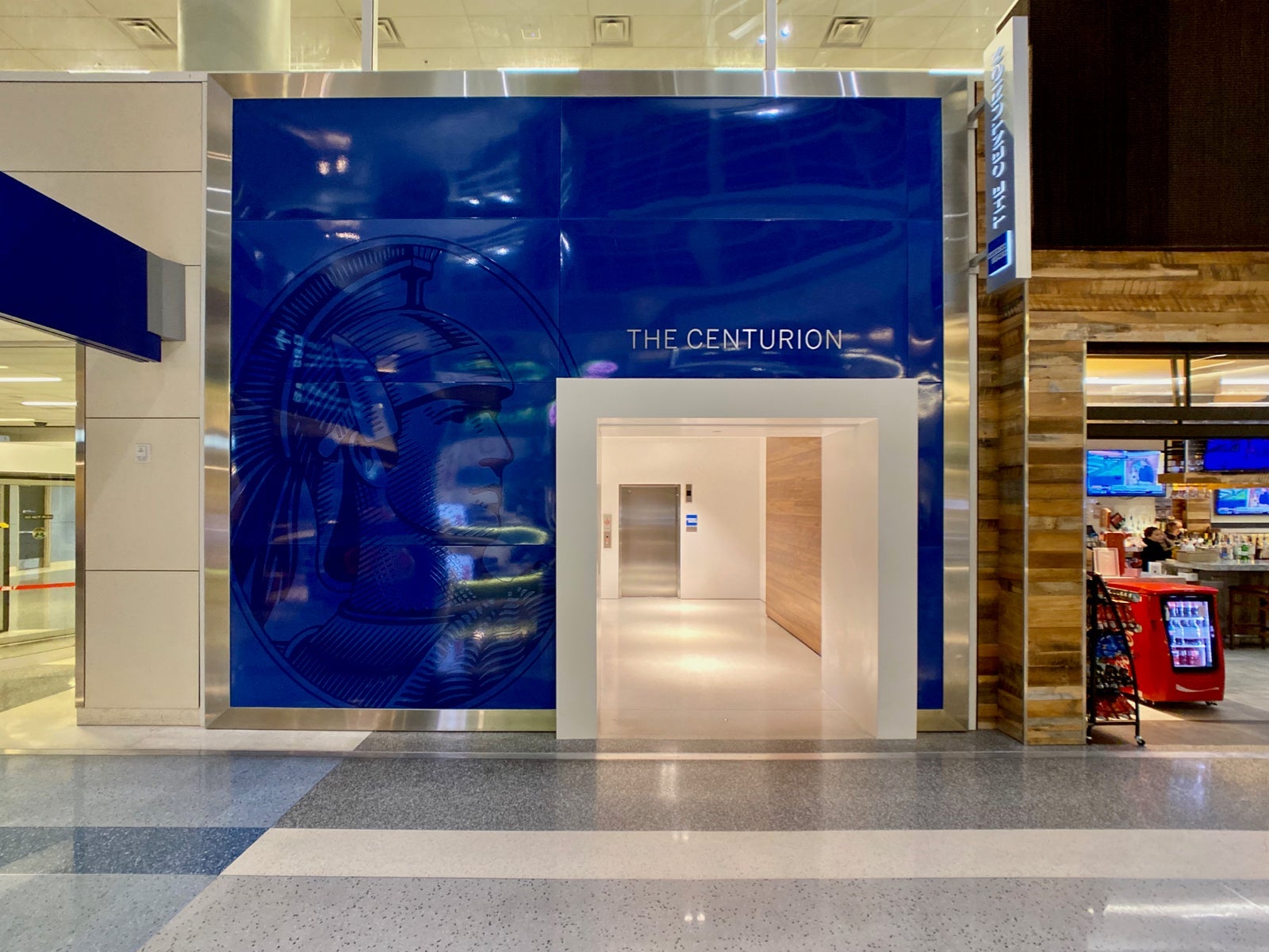 The lounge is located one level above departures near Gate D12. You definitely won't miss the entrance, since there's a big Amex-themed storefront welcoming you to the space.