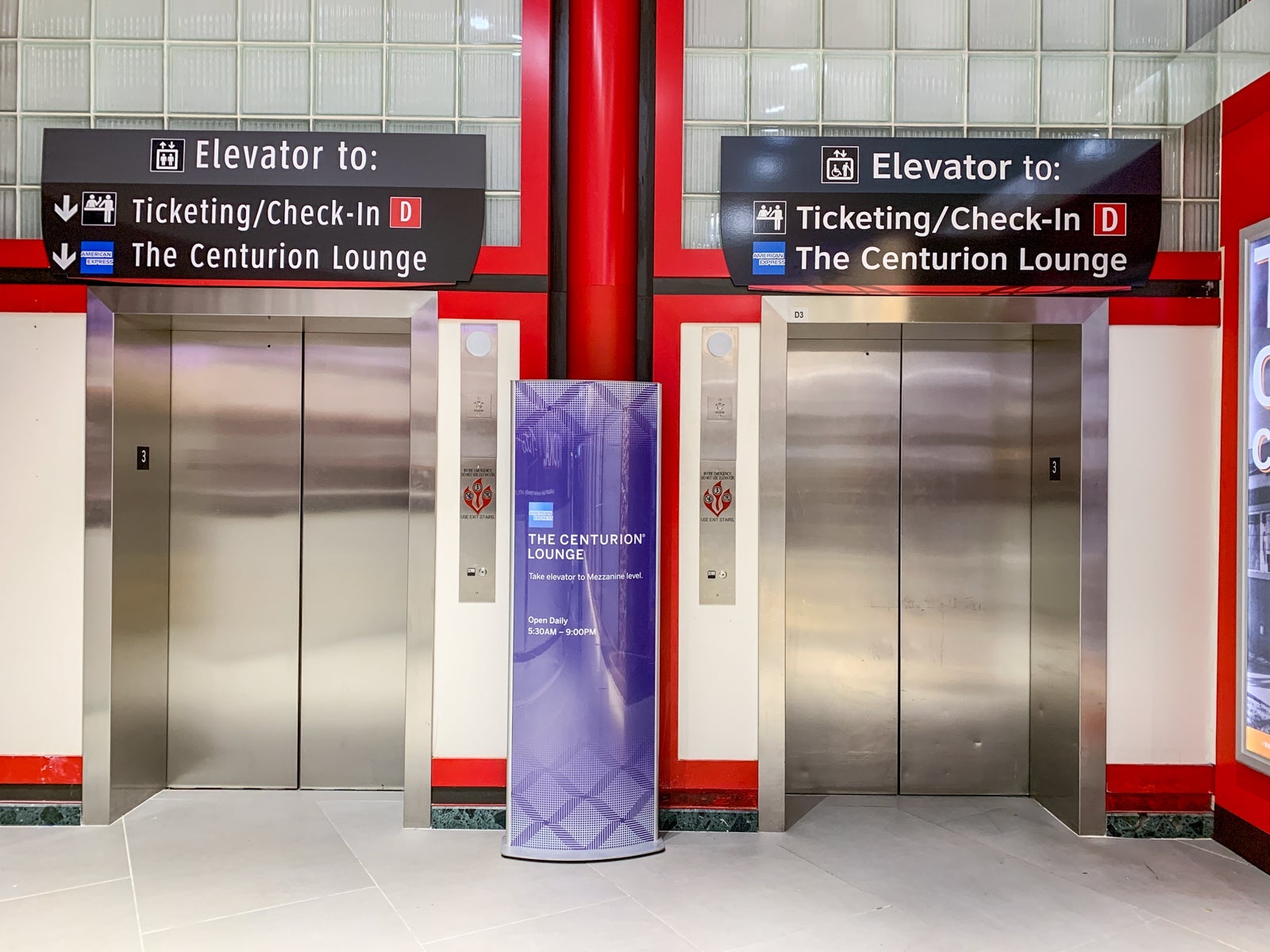 Once you find the elevators, take them from the departure-gates level to the mezzanine level to find the Centurion Lounge.