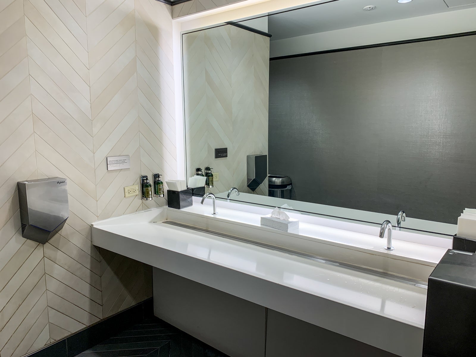 The restrooms are large, have full-sized doors for each private stall and offer L'Occitane soaps and lotions mounted to the wall. I'd call all that three steps above the other lounges at IAH.