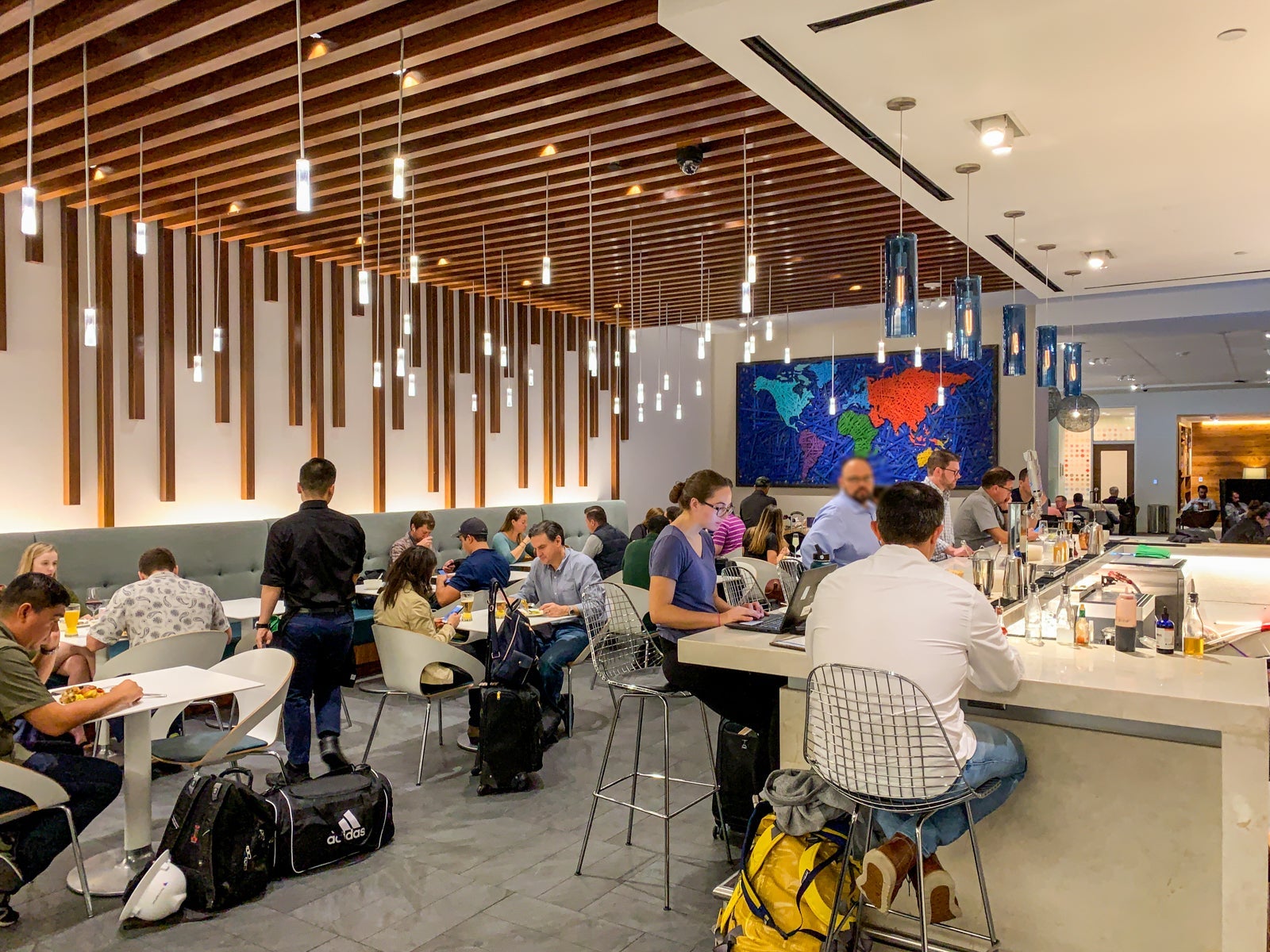 While the Houston lounge isn't the busiest in the network, the bar and dining area can certainly get quite brisk, so grab a table or seat at the bar when you see one open.