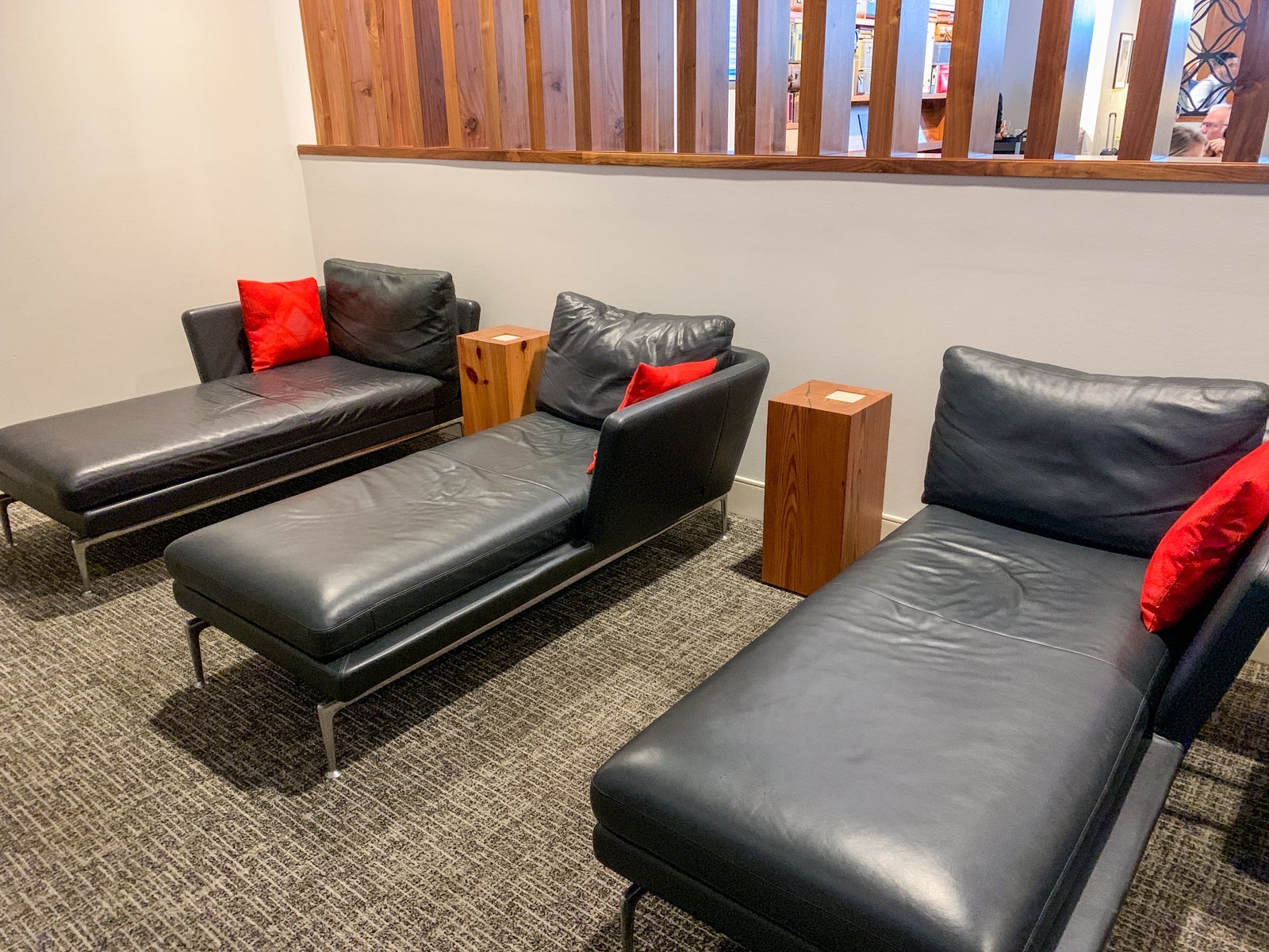 My personal favorite seating area at the IAH lounge is a bit hidden from view -- exactly what makes it great. If you walk into the heart of the lounge and then go all the way to the left, you'll find a few loungers in the quietest, calmest portion of the lounge.