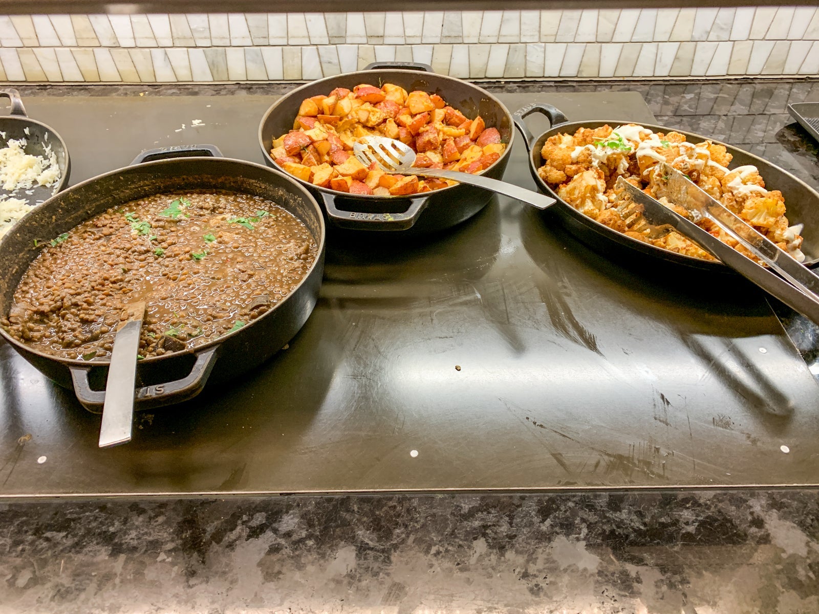While the menu rotates seasonally, some recent selections included: warm potato salad, jasmine rice, vanilla panna cotta, spiced cauliflower, braised chicken thighs, quinoa and lot of salad fixings and options. While I enjoy the offerings here for a somewhat eclectic meal, I will say that less adventurous eaters may not always find a ton they love. Picky kids may especially be challenged to fill their bellies once the clock and menu gets past the breakfast hours where biscuits and griddlecakes are usually an easy hit.