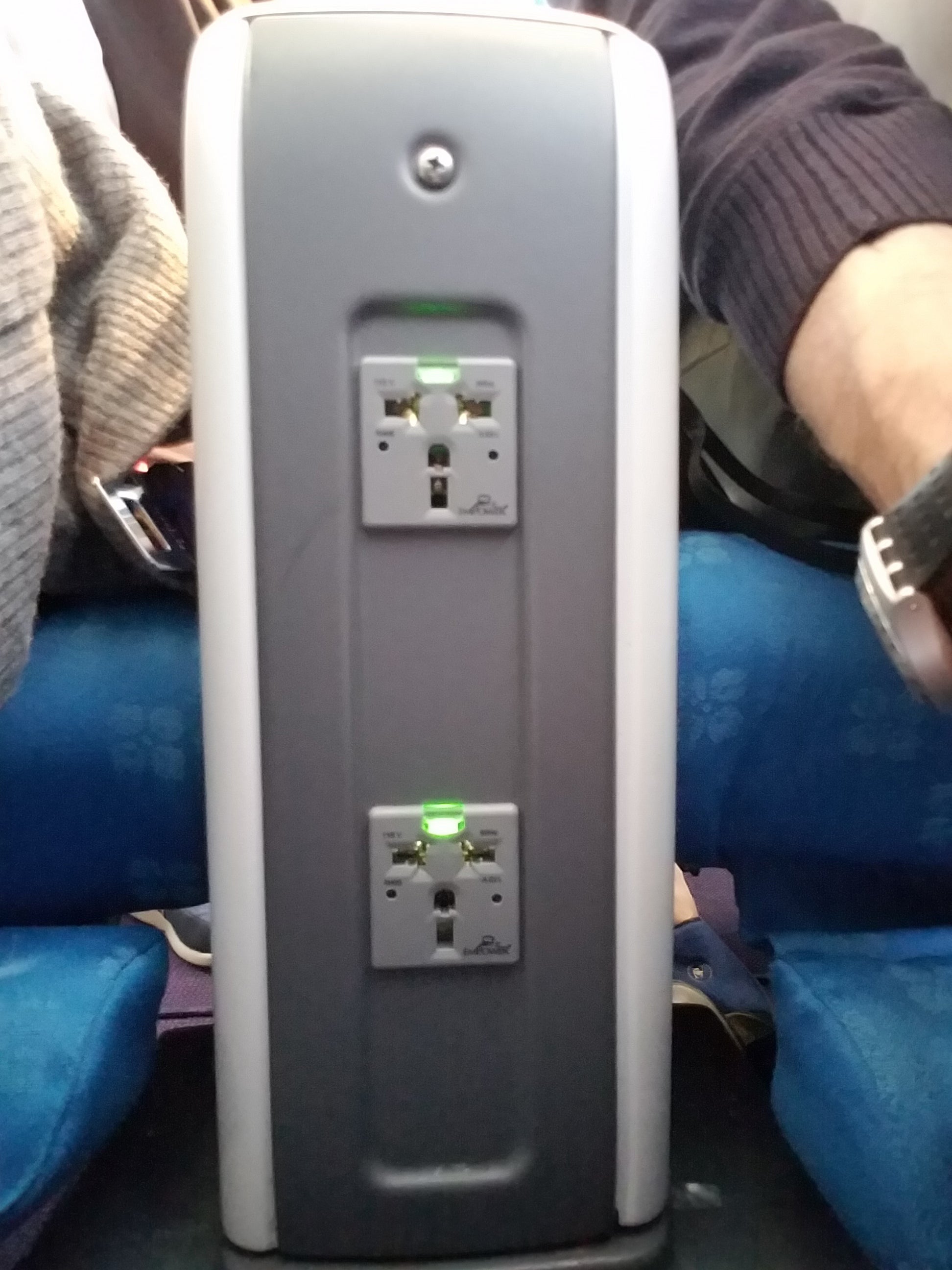 Two power outlets for each pair of seats meant no awkward moments over who got to charge their device. You could also charge from a USB outlet below the monitor in front.