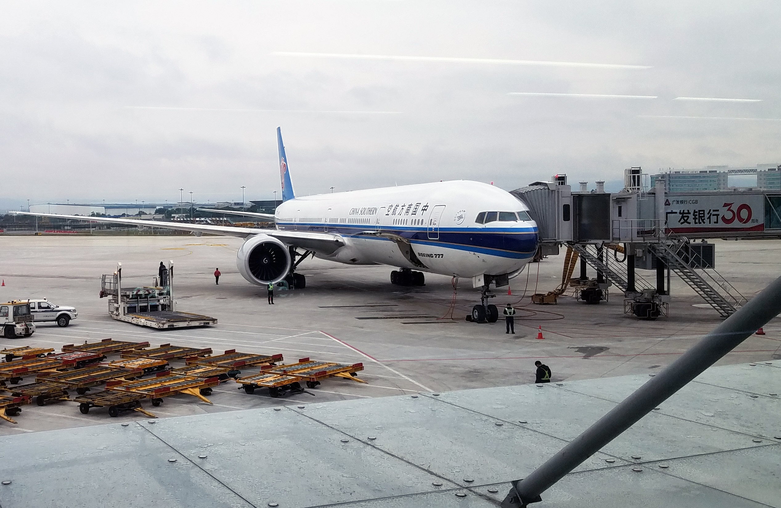 The sight of my 777-300ER at the gate lifted my AvGeek spirits up, though. Even in China Southern's utterly bland colors, a big Triple Seven in the sun is a thing of beauty.