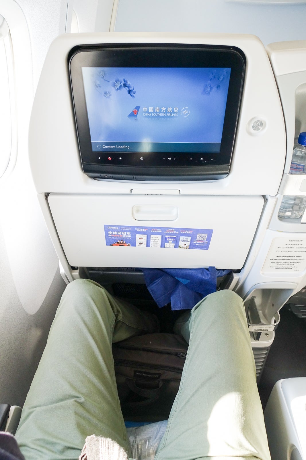 The seat padding that Brendan had found lacking on Air France was indeed thin on China Southern too, but somewhat miraculously I did not end up sore after 15 hours in the seat. Your results may vary.