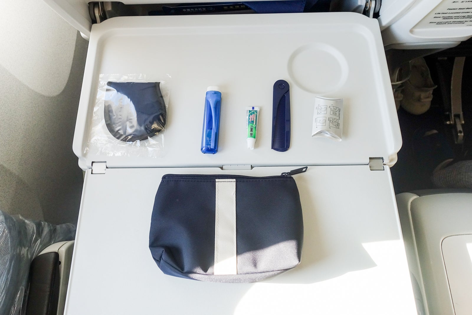 Premium economy was also distinguished by a bag with slippers and a shoehorn, as well as a miniature amenity kit with the bare essentials: toothbrush and toothpaste, eye mask, comb, earplugs.