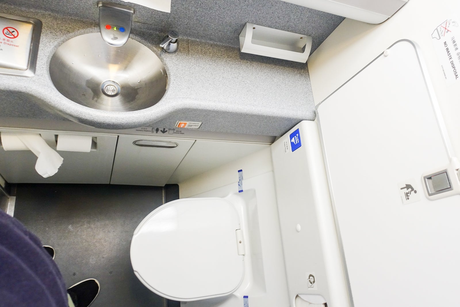 Four bathrooms, between the premium economy and economy cabins, were available. They were standard-issue 777 lavs. I found them clean throughout the flight.
