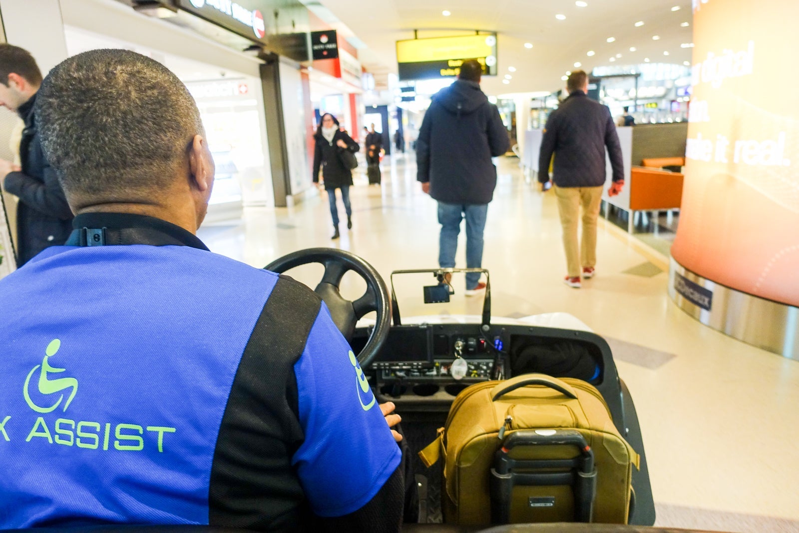 The solution appeared in the form of an electric cart stationed at the foot of the escalator after the TSA checkpoint. I always wondered at what point in my life I would become that person who rides the cart in the terminal — well, how about right now? And in less than two minutes, instead of the usual schlep, I was at the door of the lounge.