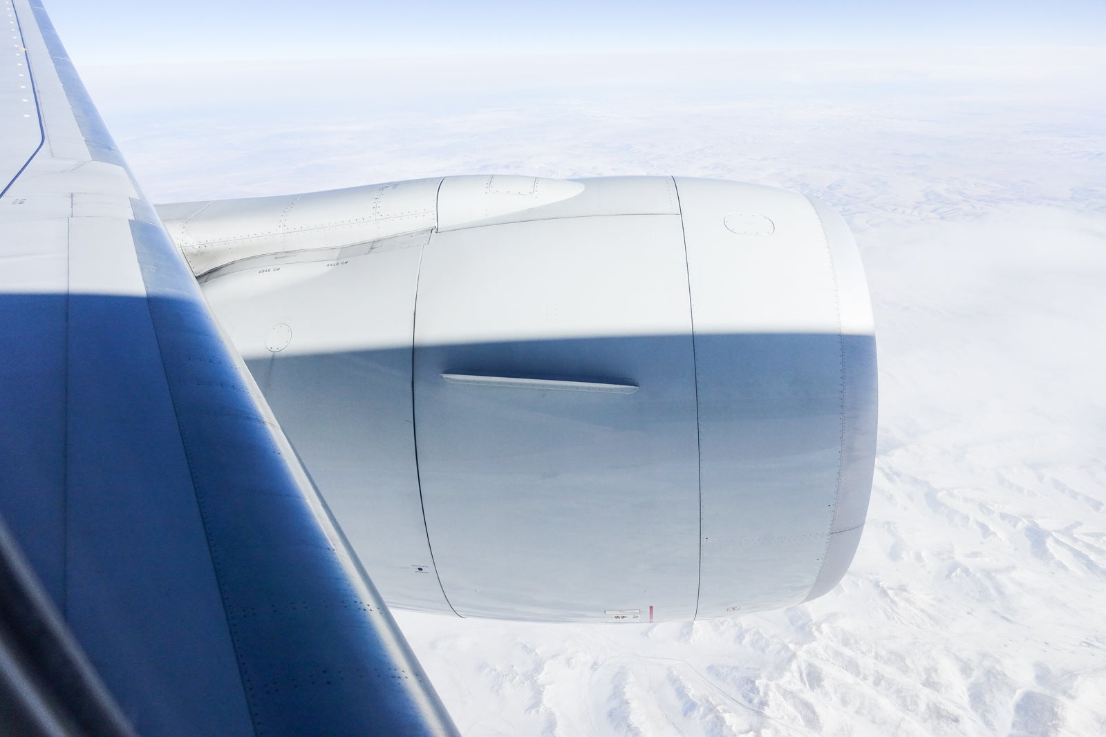 We lined up on the runway at 11:18am for a smooth, quiet takeoff roll. Even sitting next to one of the two immensely powerful General Electric engines, the noise was never disturbing — but I definitely felt the push of their 230,000 pounds of combined thrust.