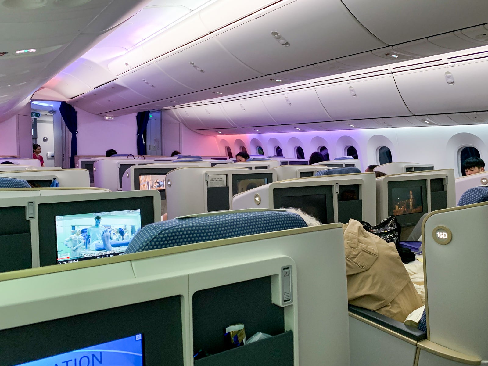 I had preselected my seat, 17A, which was one of the private, window-facing seats that were tucked away from the aisle. When I confirmed my seat with the counter agent, she informed me that my seat assignment had been released, and now 17A was shown as blocked (airlines routinely block seats as crew rest or for weight and balance purposes). She apologized for the mixup and said she could offer me the seat right in front, 16C, one of the aisle-facing seats. I asked if there were any of the "true" window seats remaining (seats with the letter "A" or "K"), but they were all occupied.