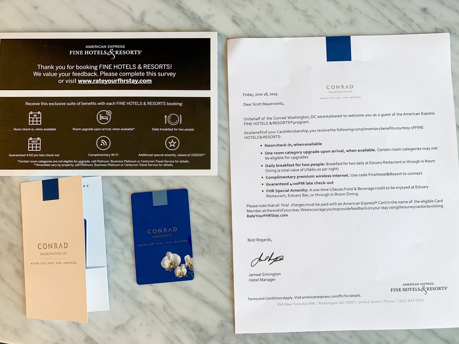 The Conrad Washington, DC, is also part of the American Express Fine Hotels & Resorts program, which offers free breakfast, a property amenity and elite benefits. I have access to the program thanks to my Platinum Card® from American Express and decided that the $100 food-and-beverage credit and free breakfast (we were given $60 each morning) was worth the slightly higher nightly room rate of $236.