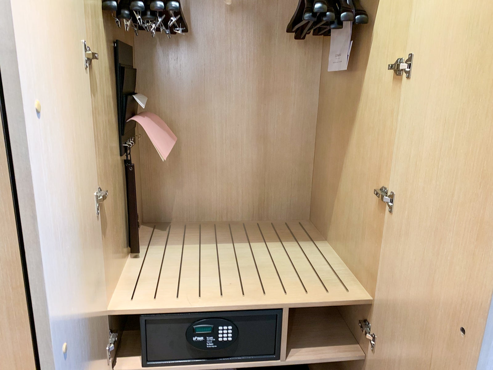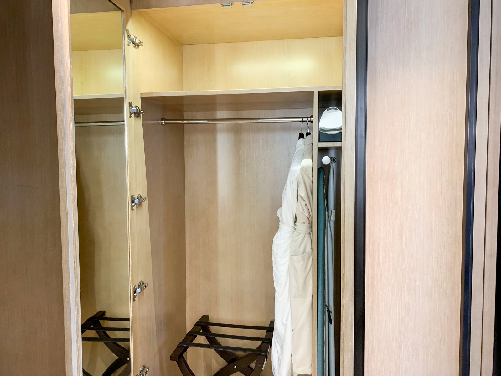 There were two closets, two bathrobes and slippers, a deep safe and plenty of spots to store clothes for a few nights' stay. The only thing extra I would have liked was an oversized umbrella.