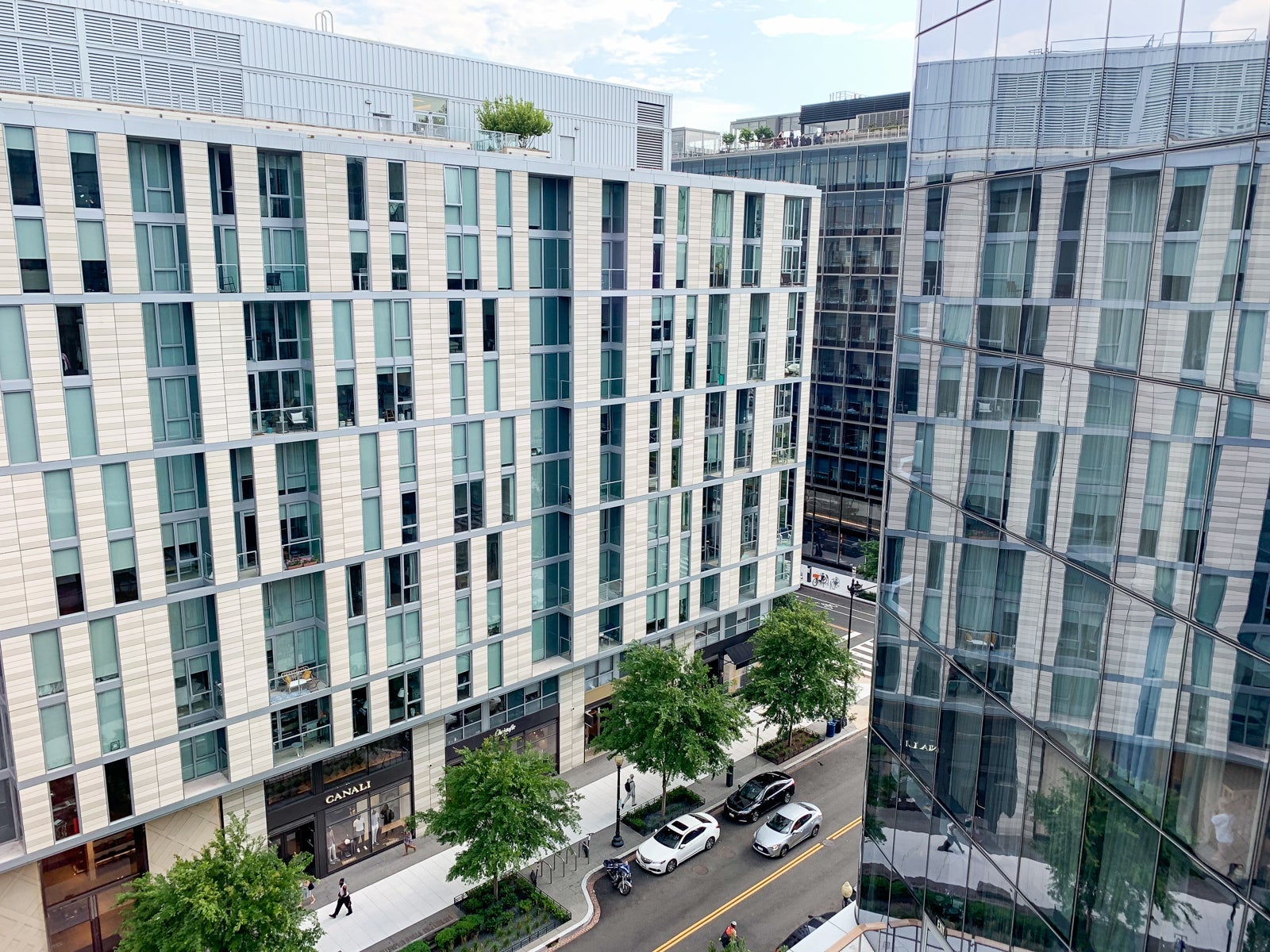 The hotel is the northern extension of the fancy CityCenterDC outdoor shopping area and apartments. So far, only Tiffany & Co. has opened on the ground floor of the hotel. Plenty of other empty stores in the hotel are waiting to be occupied, though the luxe CityCenter shopping area that includes the Conrad has one of the top concentrations of high-end stores in the city.