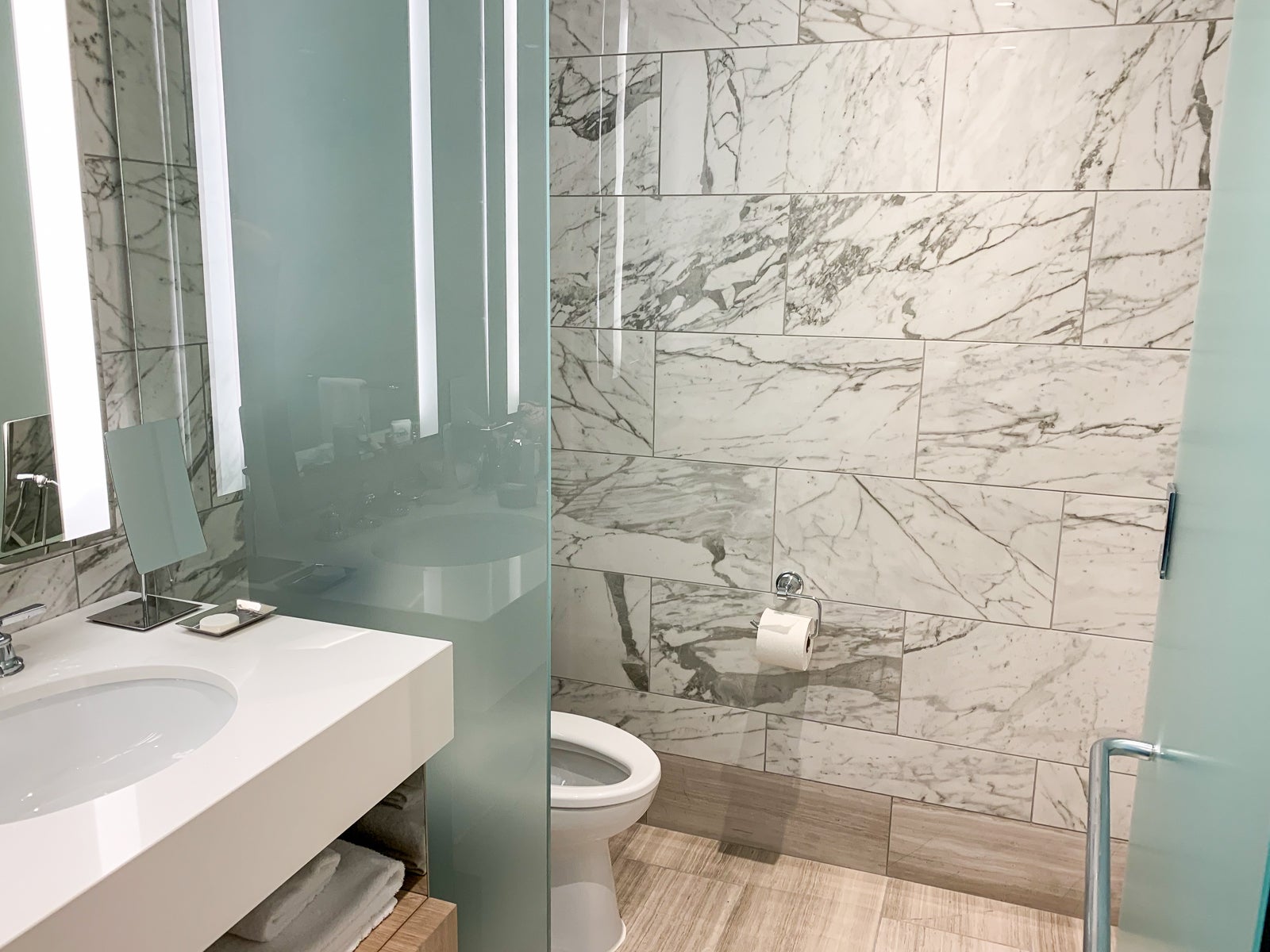 If I were to nitpick — and what sort of review wouldn't point out those minor things? — I would note that the toilet paper was also closer to what would be found at a Hampton Inn than the plush, multi-ply paper expected at a luxury hotel. (I was also disappointed that the public bathrooms near the rooftop bar lacked the cloth towels found at most top-tier properties and just had standard paper towels.)